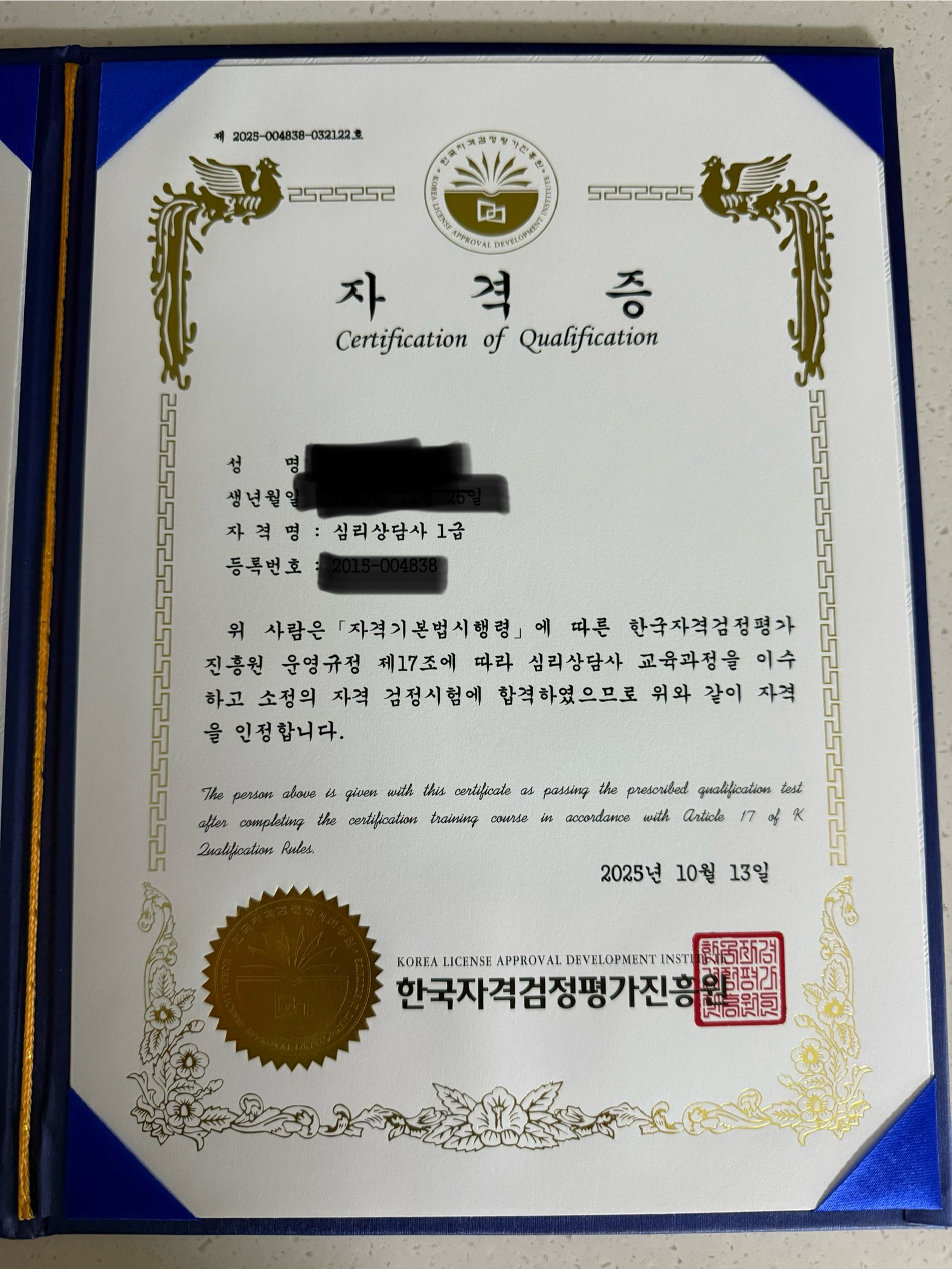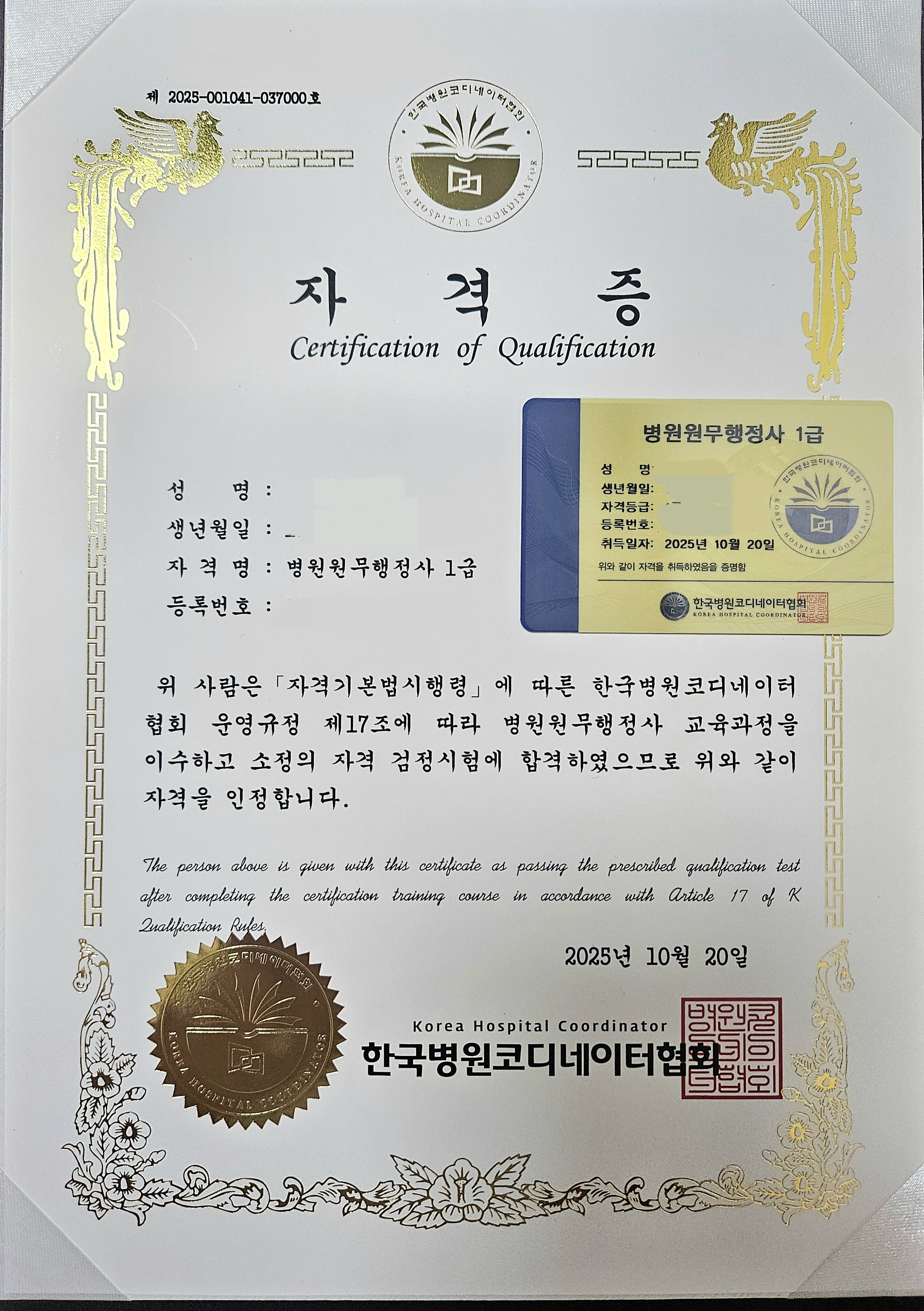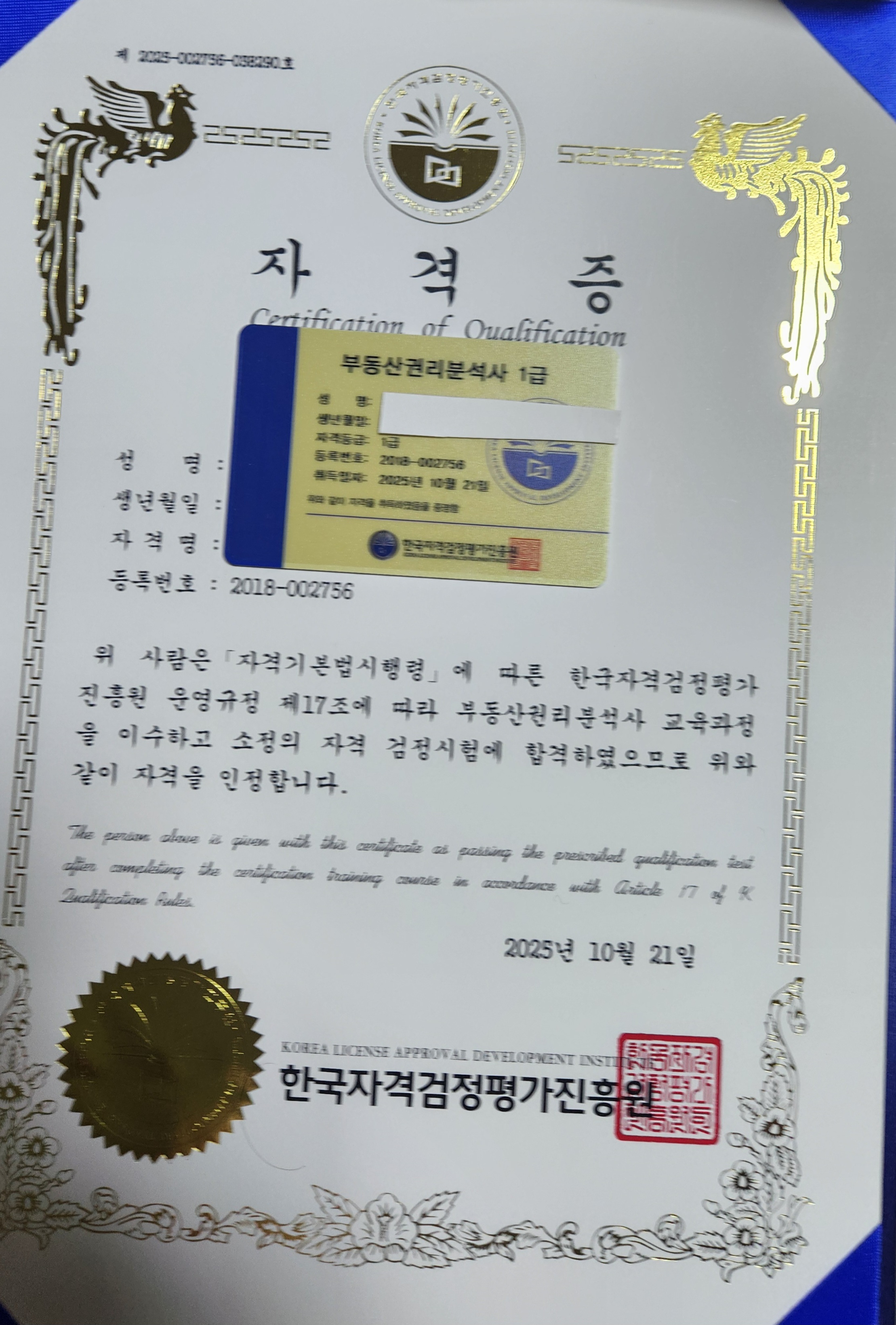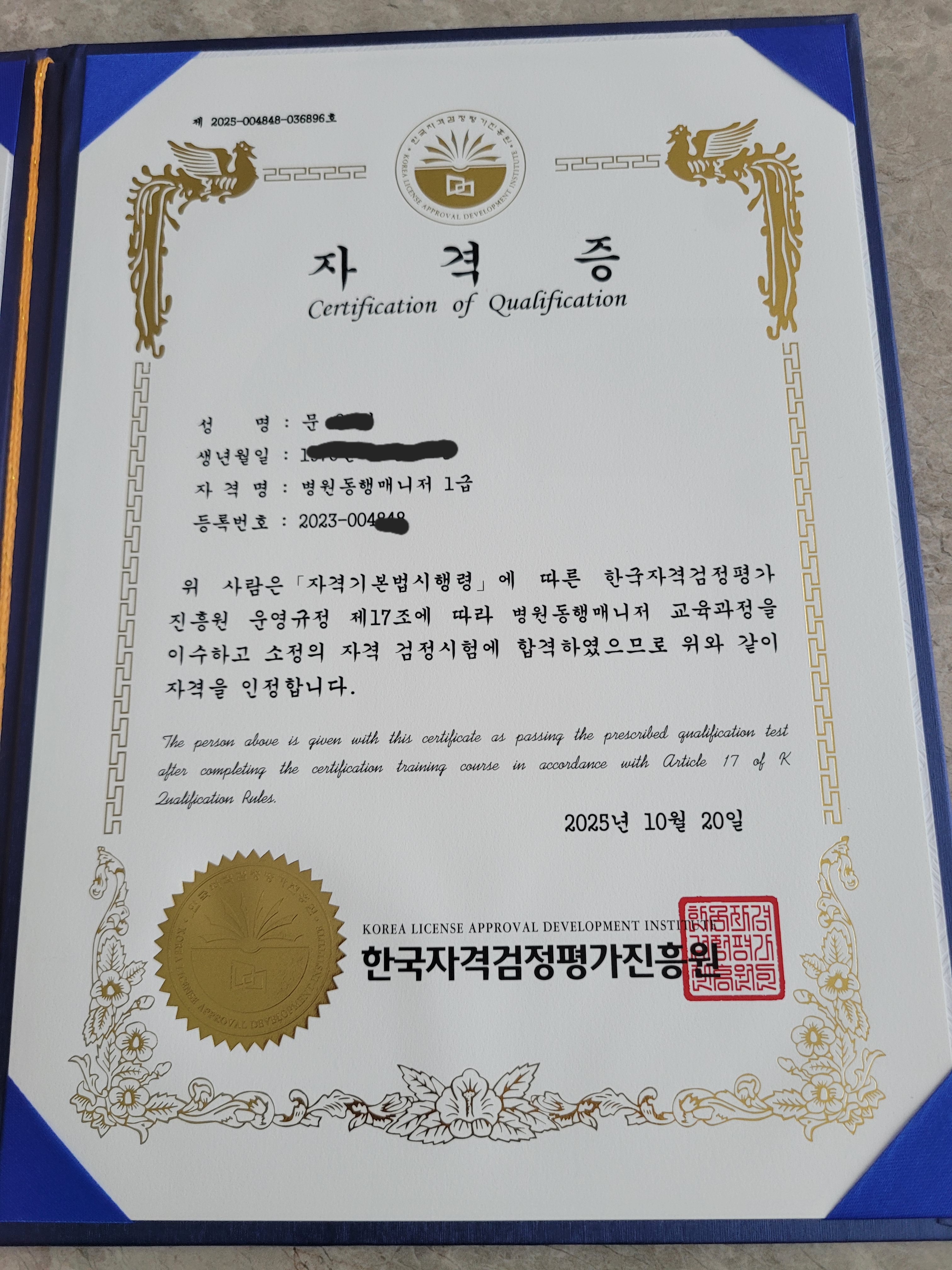 첫 자격증 취득입니다!^^