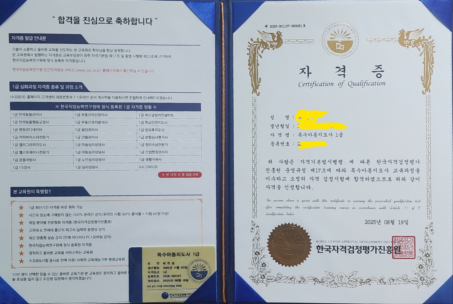 특수아동지도사 1급 취득