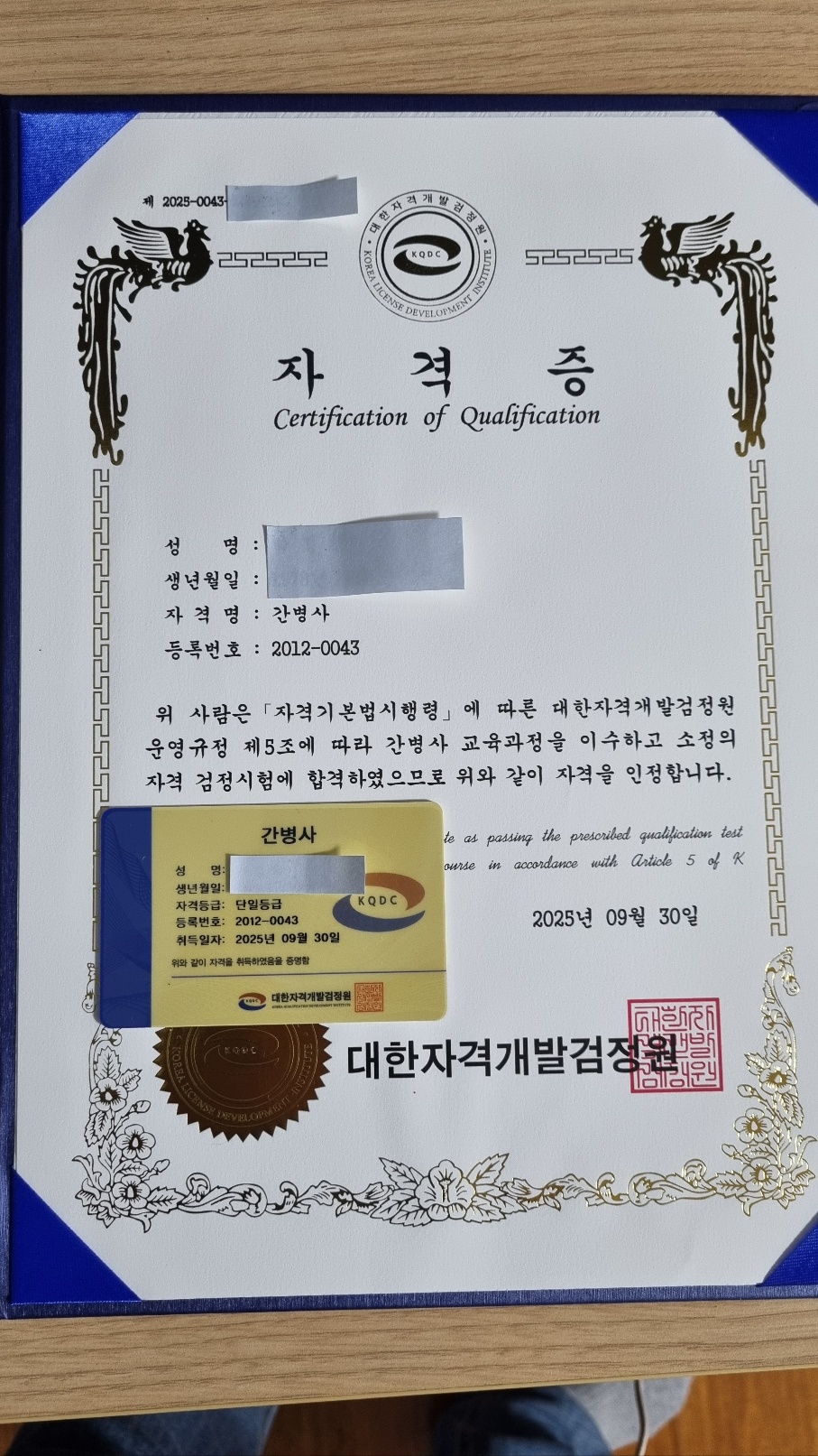 간병사 합격했습니다.