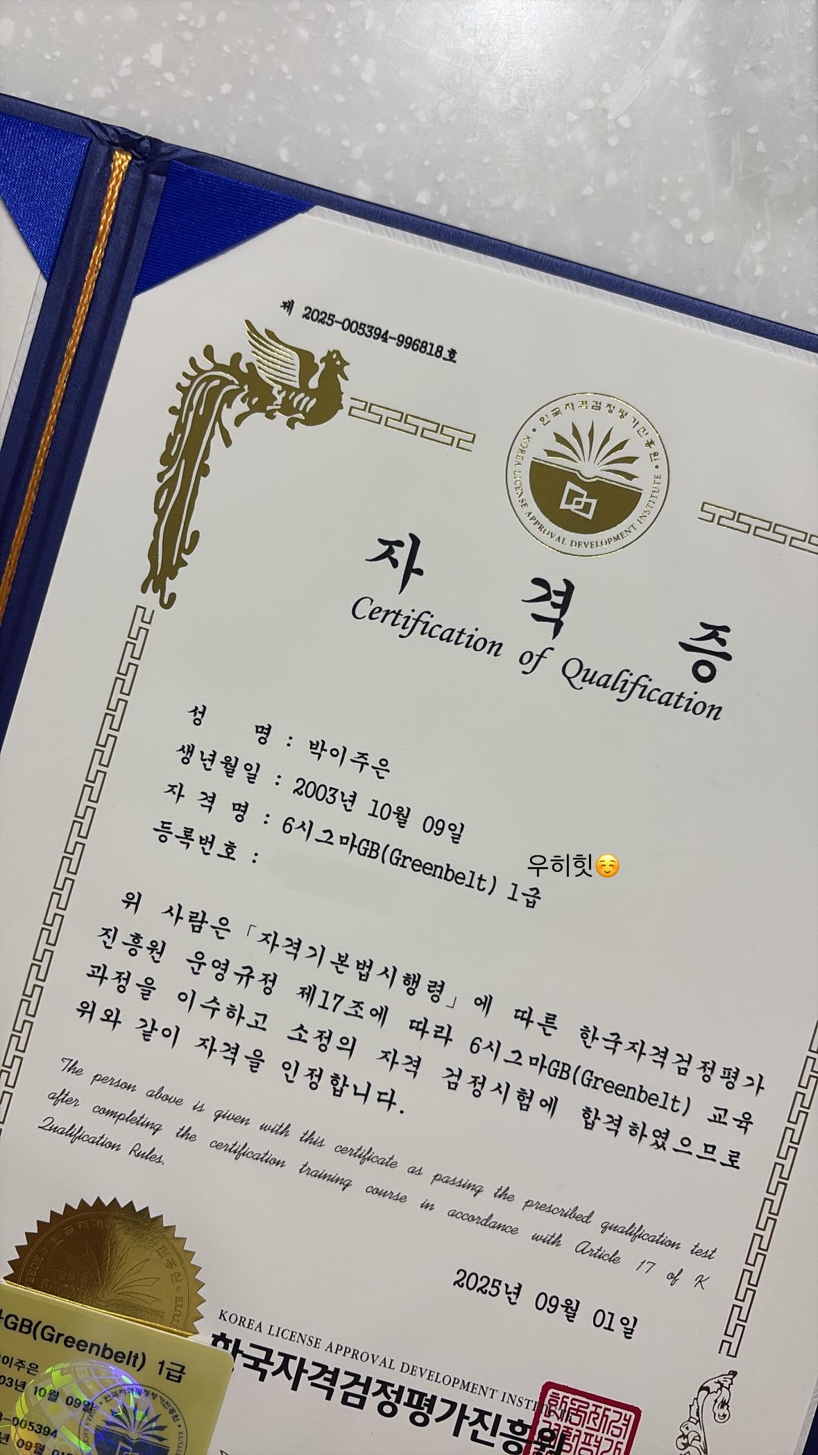 6시그마GB 1급 합격했습니다!