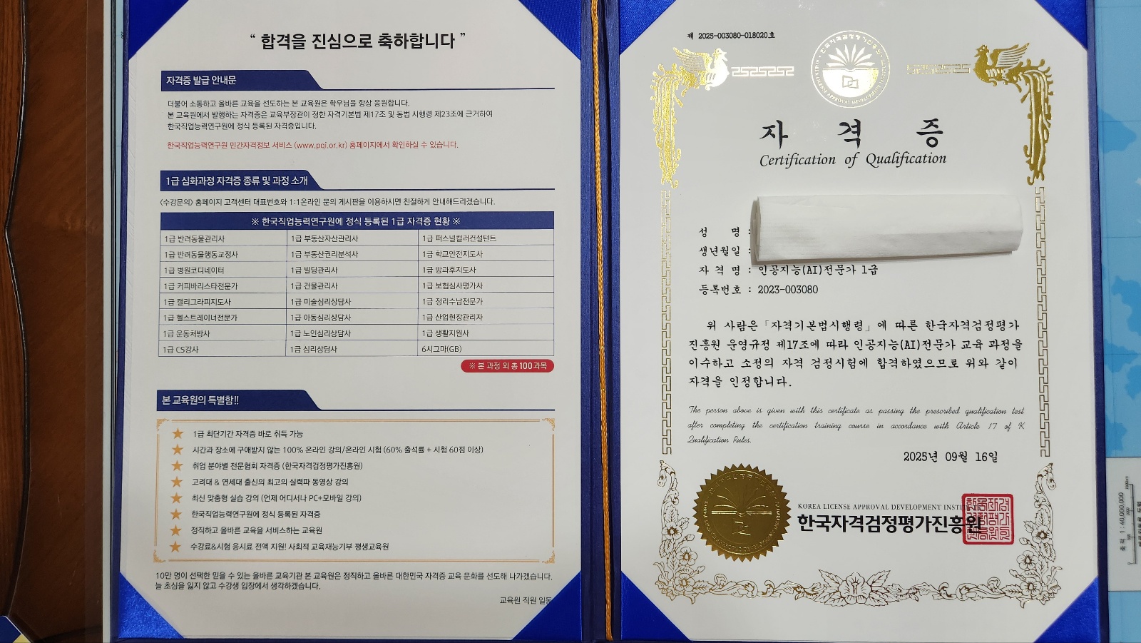자격증 3개 수료