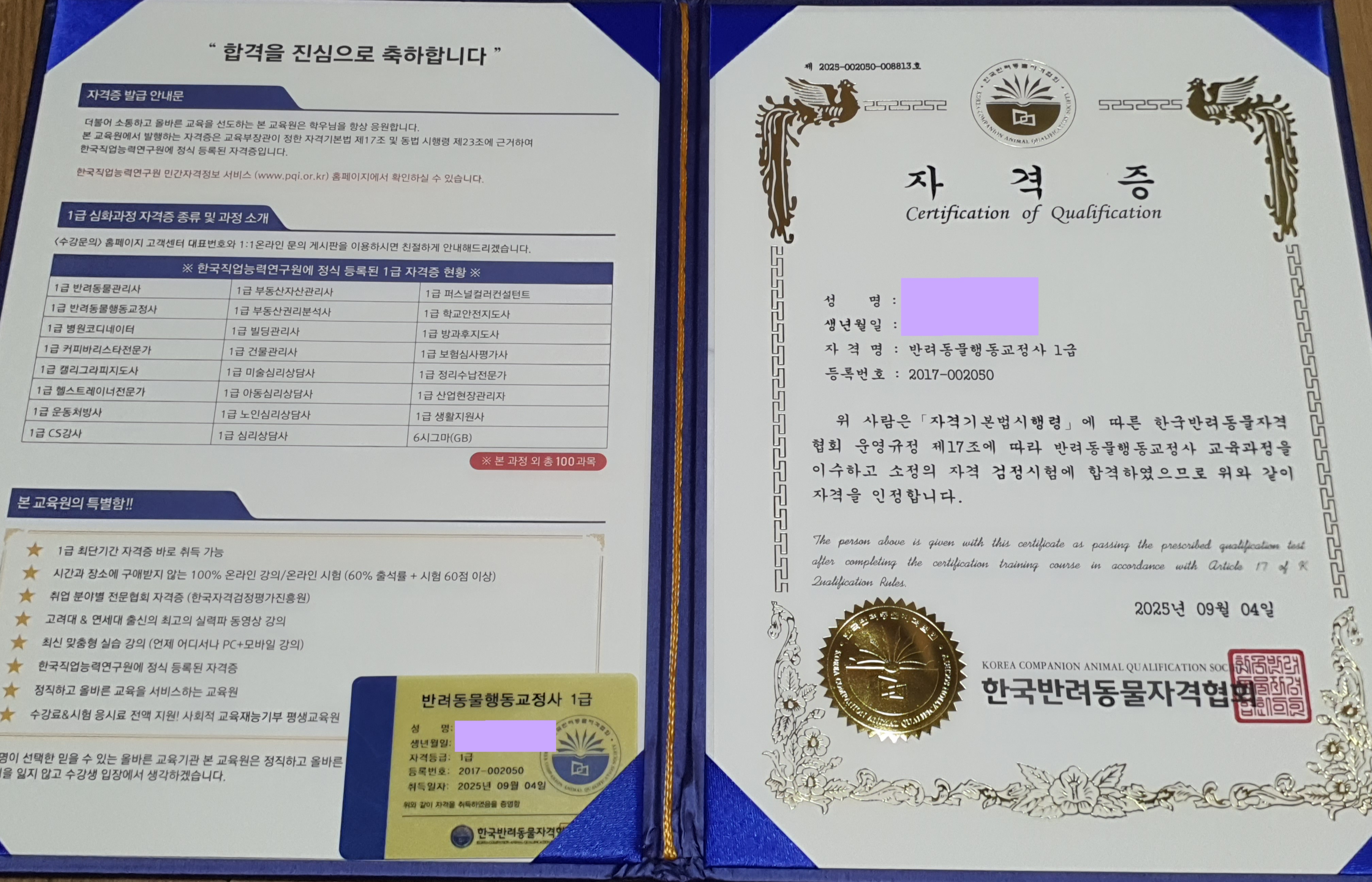 대학 졸업 후 부모님 가게를 도와드리다 자립하기 위해 방법을 알아보던 중 수강료 0원으로 자격증을 딸 수 있다는 광고를 보게 되었고 "그래 한번 해보자"라는 마음으로 시작하게 되었던 게 지금 제 손에 자격증으로 와닿아있네요 목표에 한 발짝 다가간 이 벅참과 행복한 기분을 발판으로 열심히 살아가겠습니다 감사합니다.