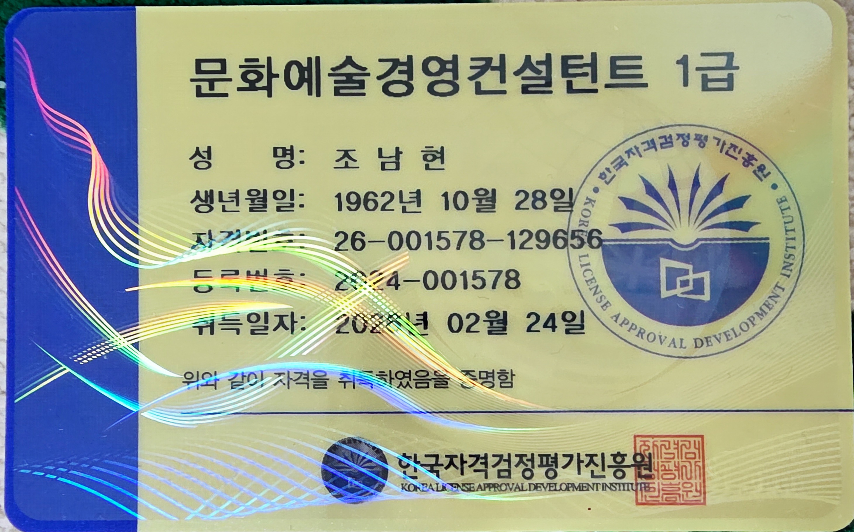 너무 기쁩니다 문화예술경영컨설런트1급 자격증합격은 사회로 나아가는 나에겐 큰 힘이 되고 자신감에 뿌득합니다 여러분도 도전하세요 늦었다고 생각할때가 가장 빠르 답니다