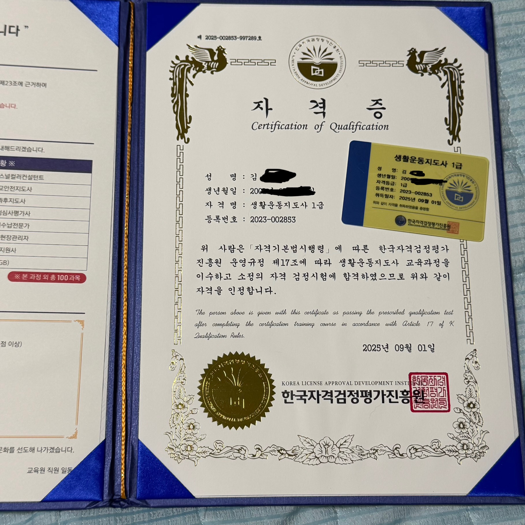 장애인활동지원사지도사1급 아들이랑 같이 취득했어요.