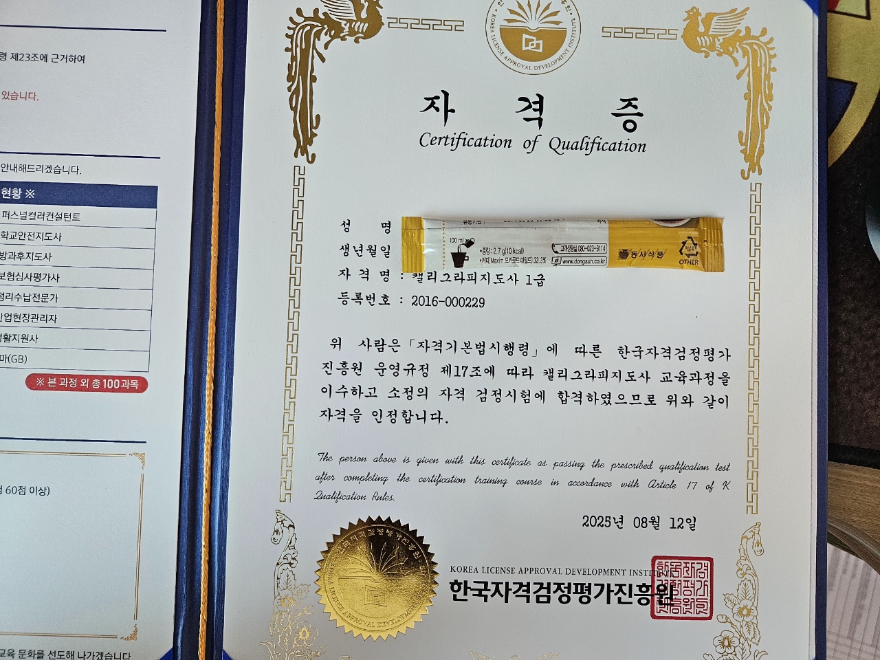 캘리그라피지도사 1급