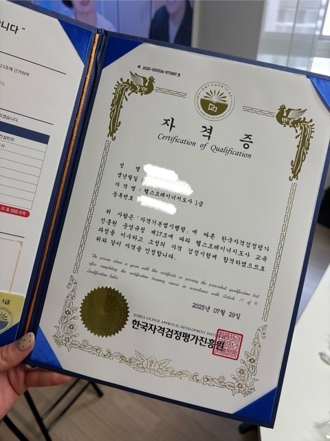 피부관련 공부를 하던 중 체형관리사 자격증을 따고 싶어 알아보다가 듣게되었습니다 덕분에 짧은 기간안에 딸 수 있었습니다 딴 자격증도 따고 이 자격증도 유용하게 쓰고 싶네요 다른 사람들도 저와 같이 자격증을 따셨으면 좋겠네요