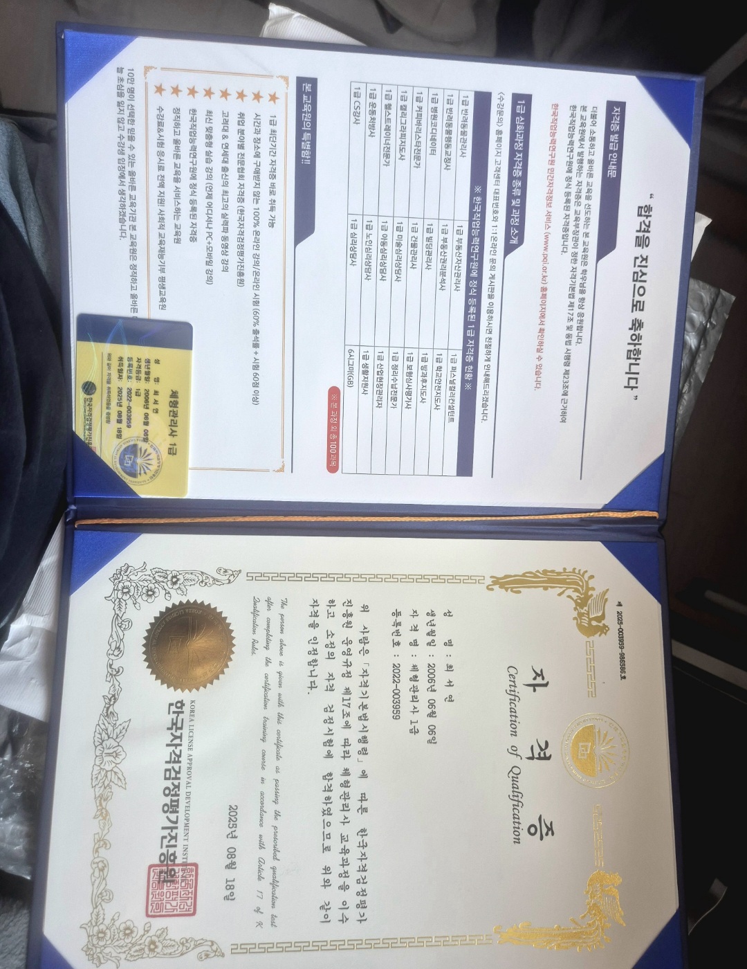 새로운 분야로 이직을 준비하던 중 우연히 알게 된 국민자격증 인증협회를 통해 원래 직장을 다니면서도 차근차근 자격증을 준비할 수 있었습니다. 하나 둘 씩 스펙 채워넣기 너무 좋아요 감사합니다.