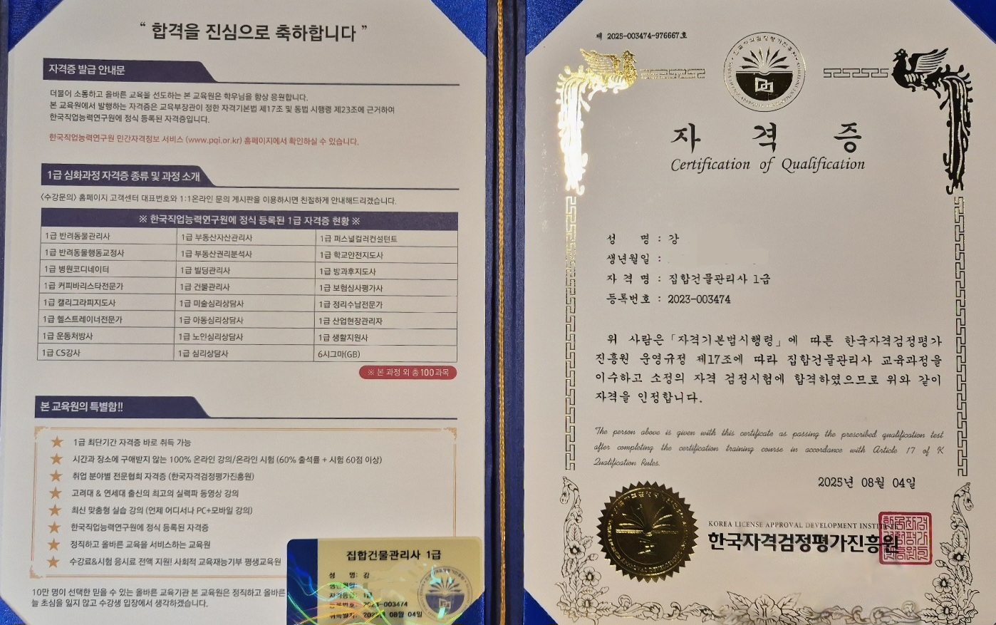 우연히 오라인으로 알게됫다가 강의를 받게 됫는데 요즘고령화 사회와 평소관심이 잇엇는데 강의가 너무잘되잇어 이틀수강후 합격 하엿습니다 너무감사합니다