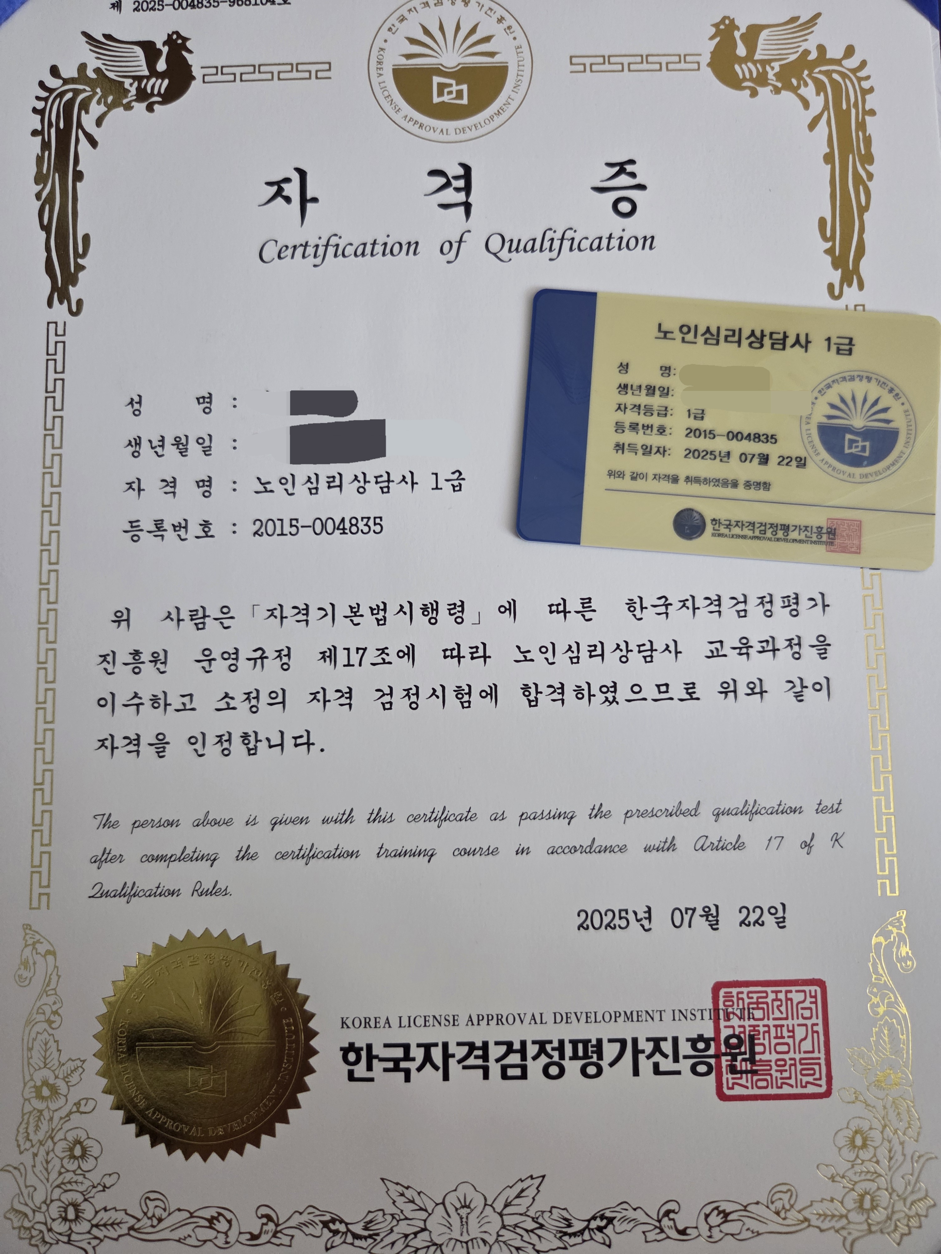 합격! 자격증 생겼어요!!!!