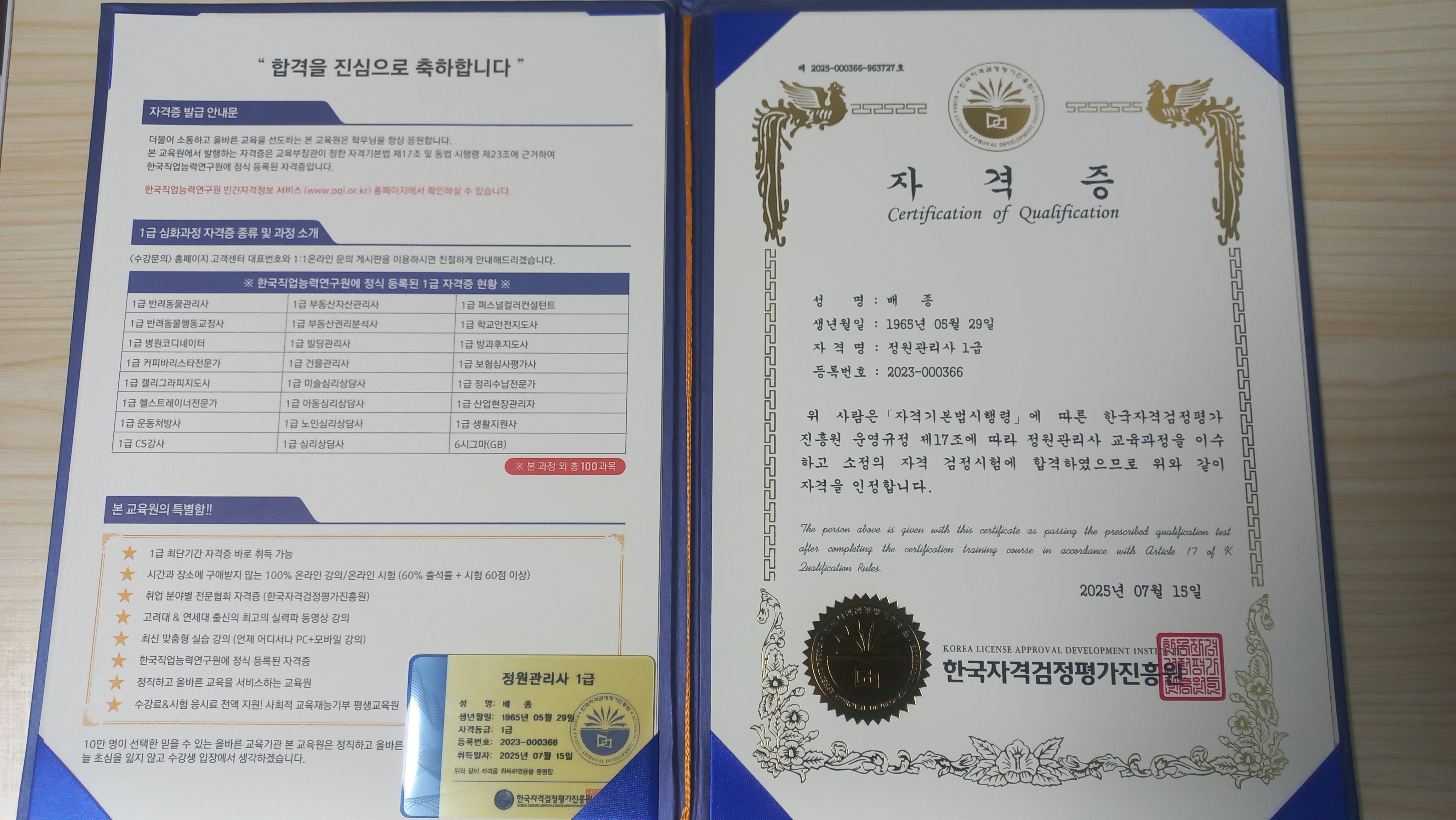 정원관리사 1급 자격취득