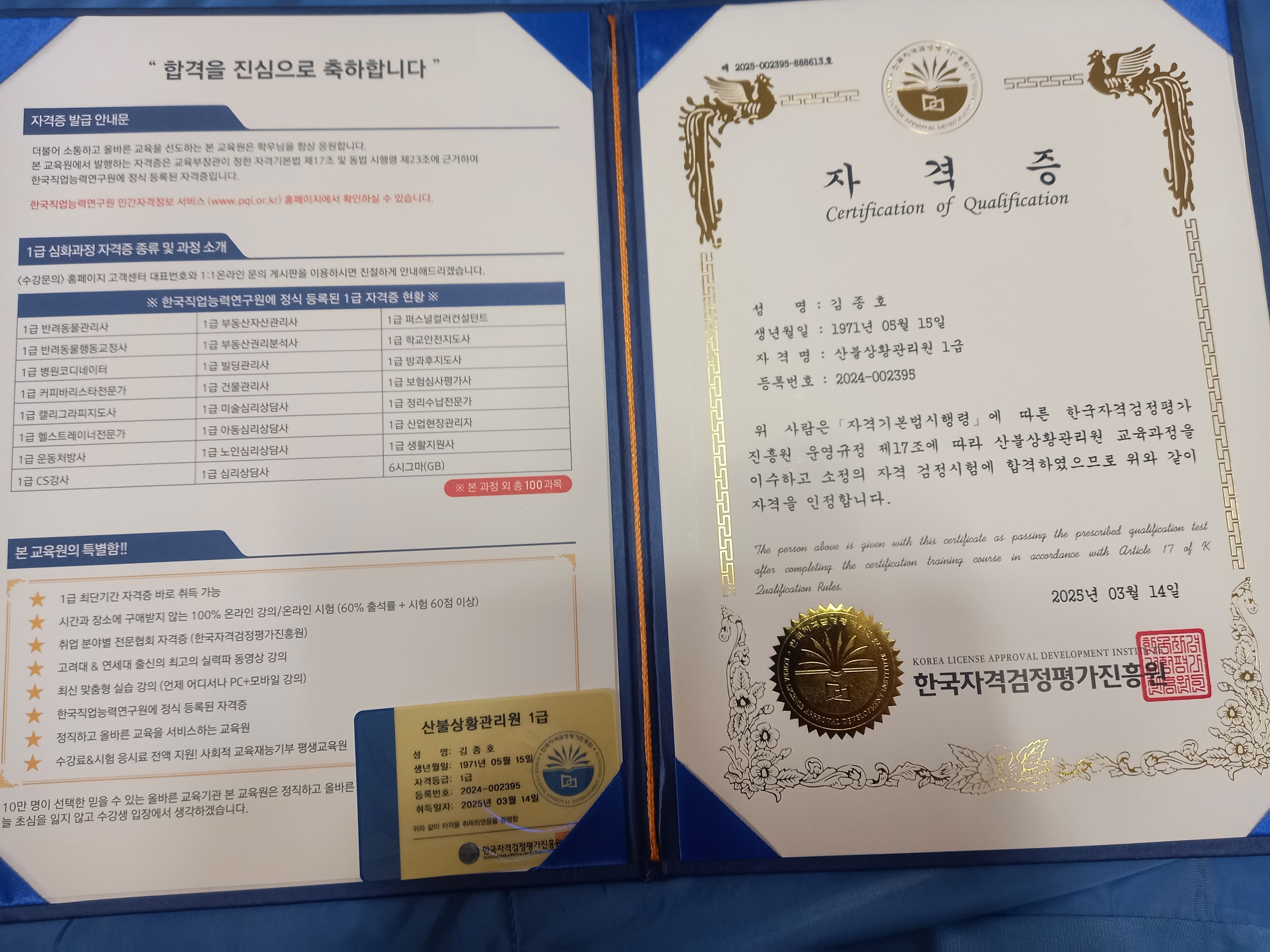 자격증보유하는게 어렵다고 생각했었는데 생각보다 편하게취득할수있어 좋았어요 사람들에게 도움이 되고자 여러가지 자격증을 시도해 봅니다.