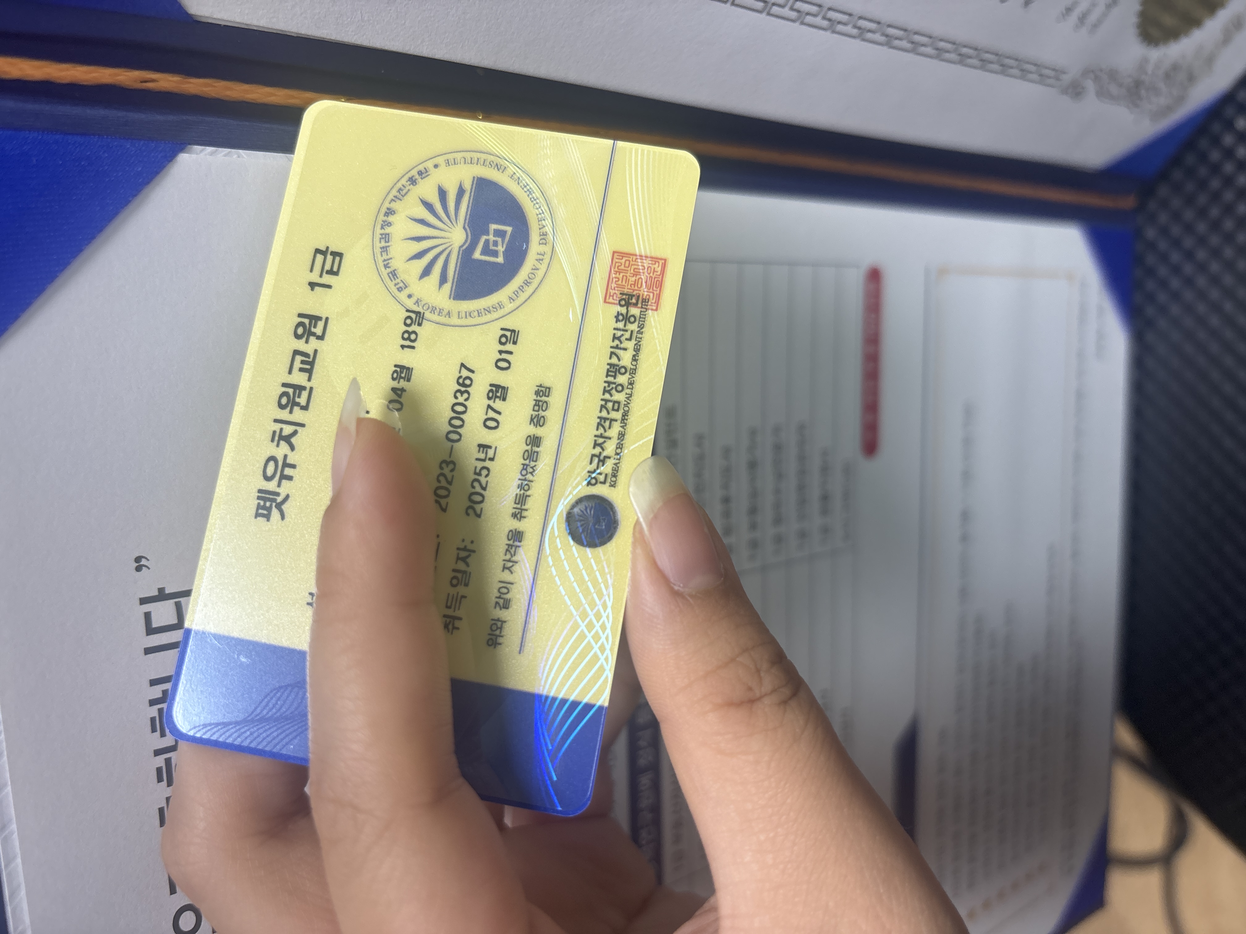애견유치원에서 근무하며 도움이 될 것 같아서 취득했어요