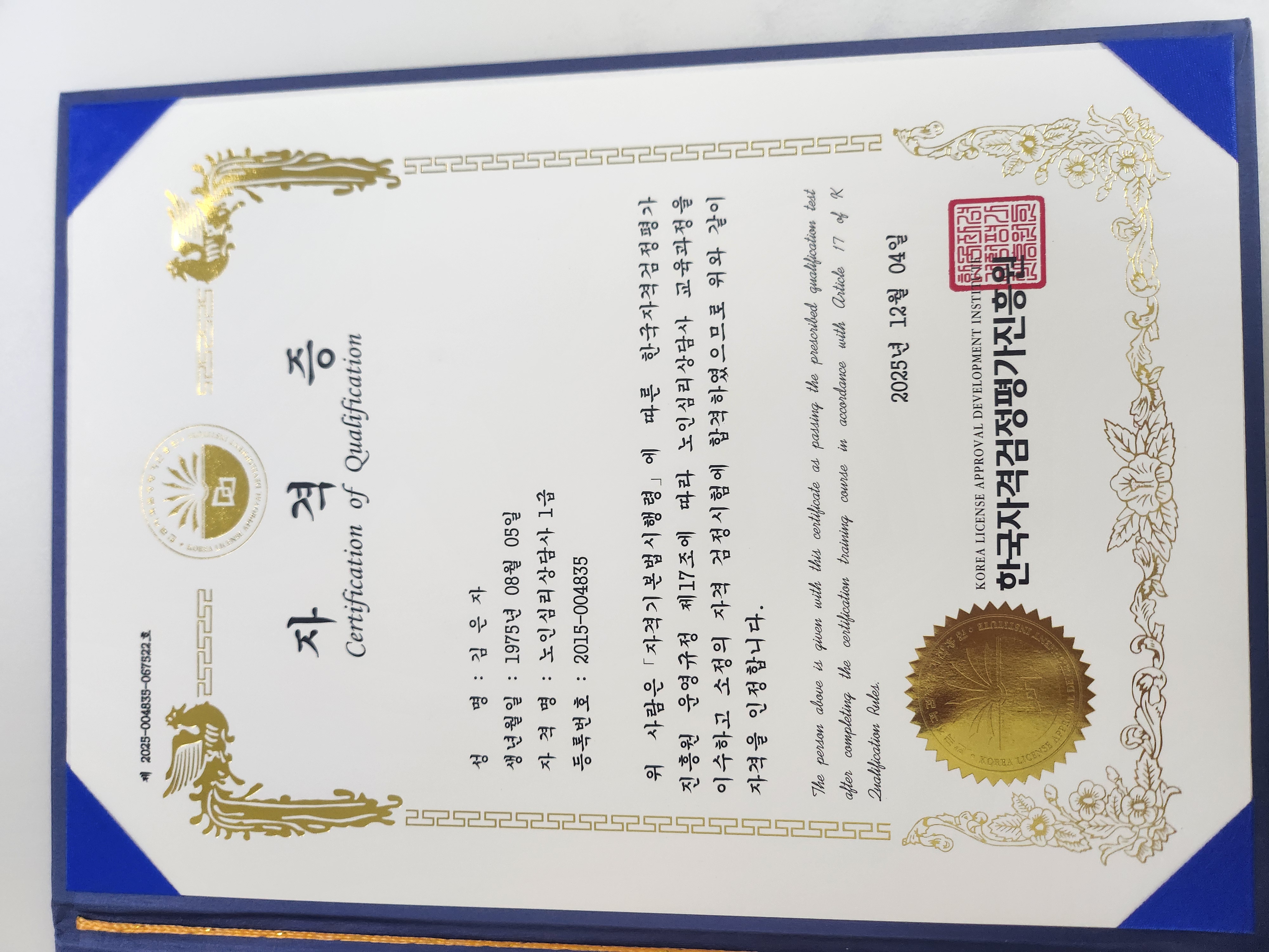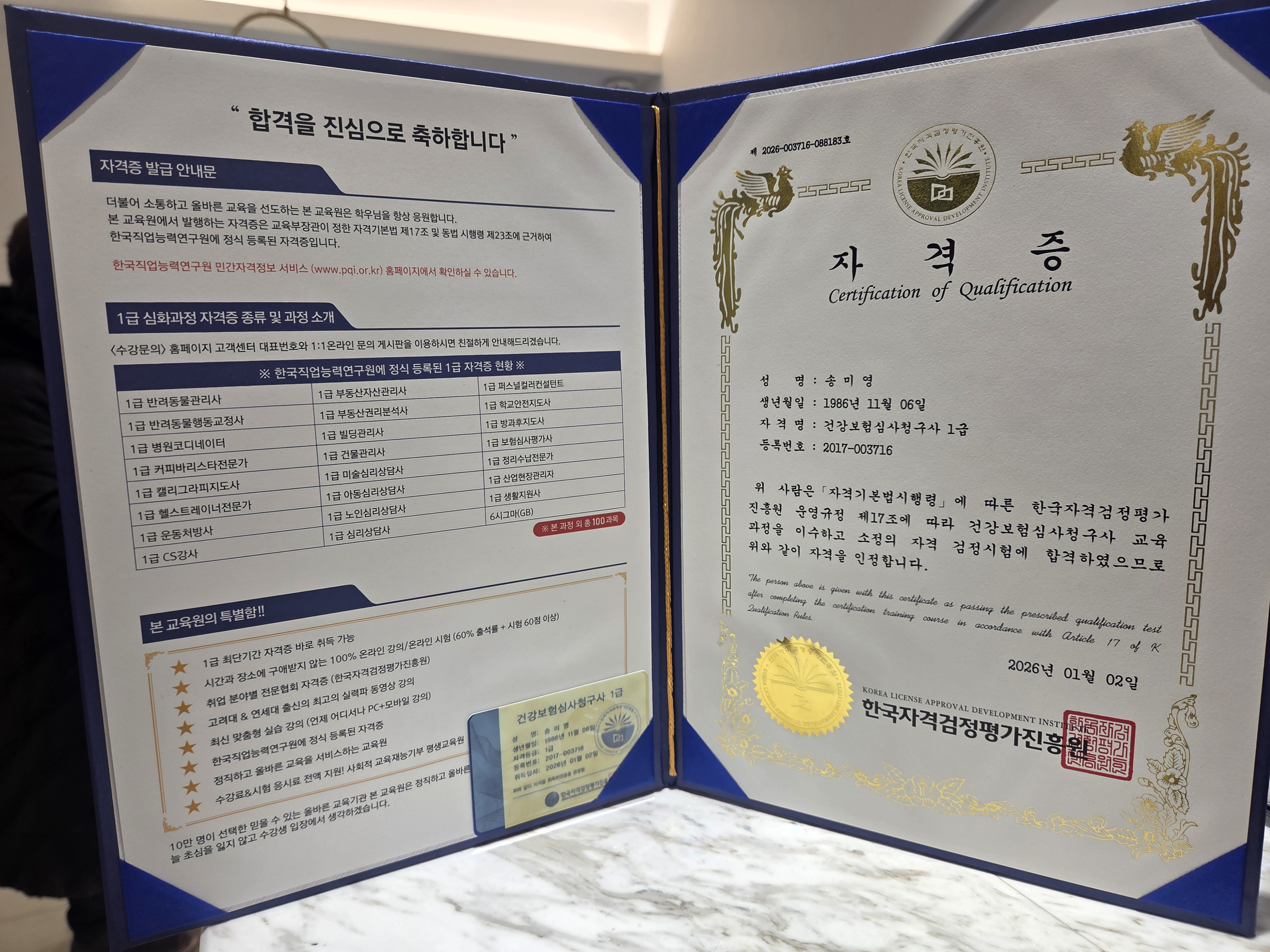 복지시설에 근무 중으로 도움이 될까 하고 도전했습니다. 누구나 열심히 하면 할 수 있습니다!!