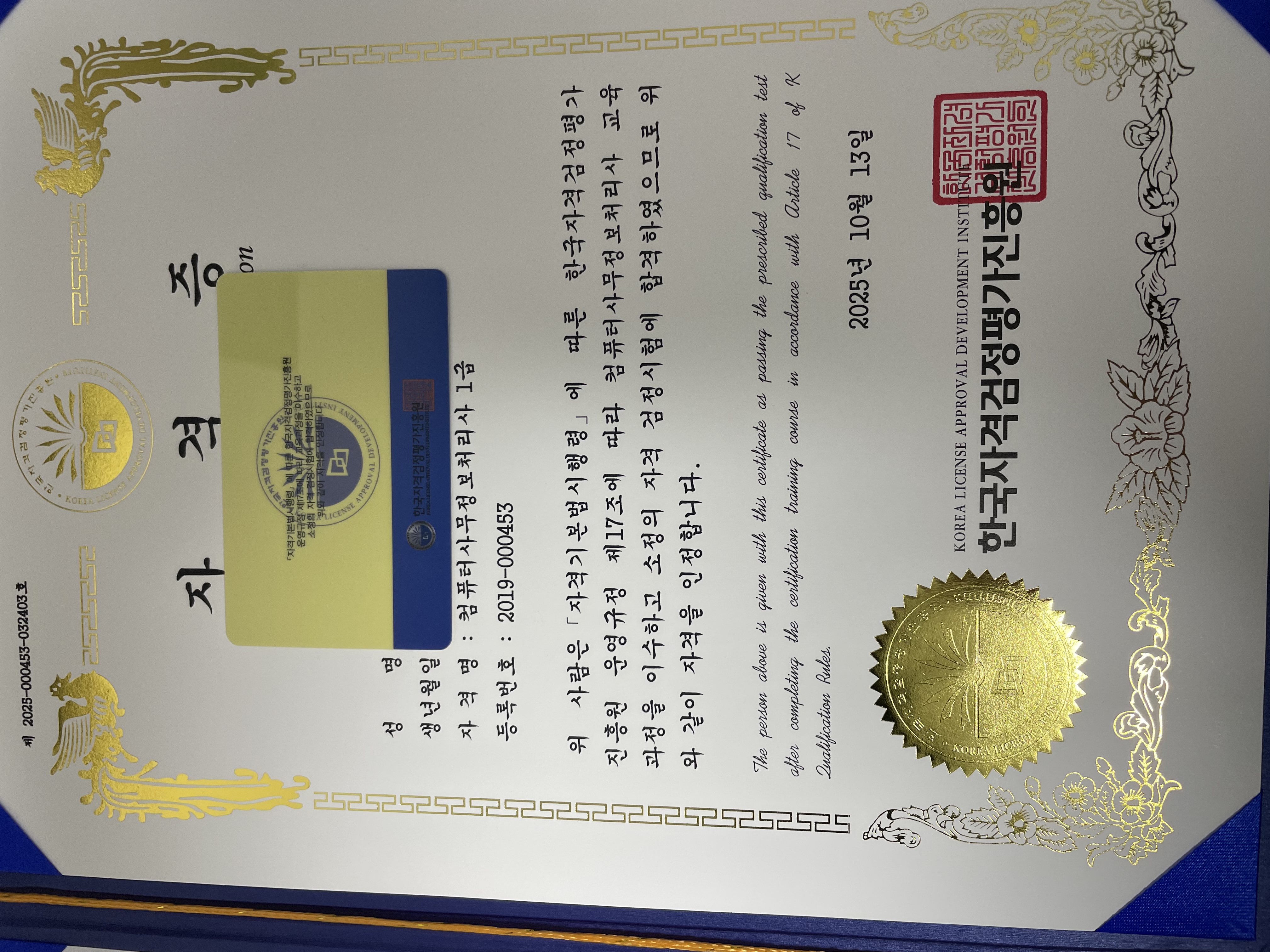 직무 변경하려고 자걱증 취득했어요~!