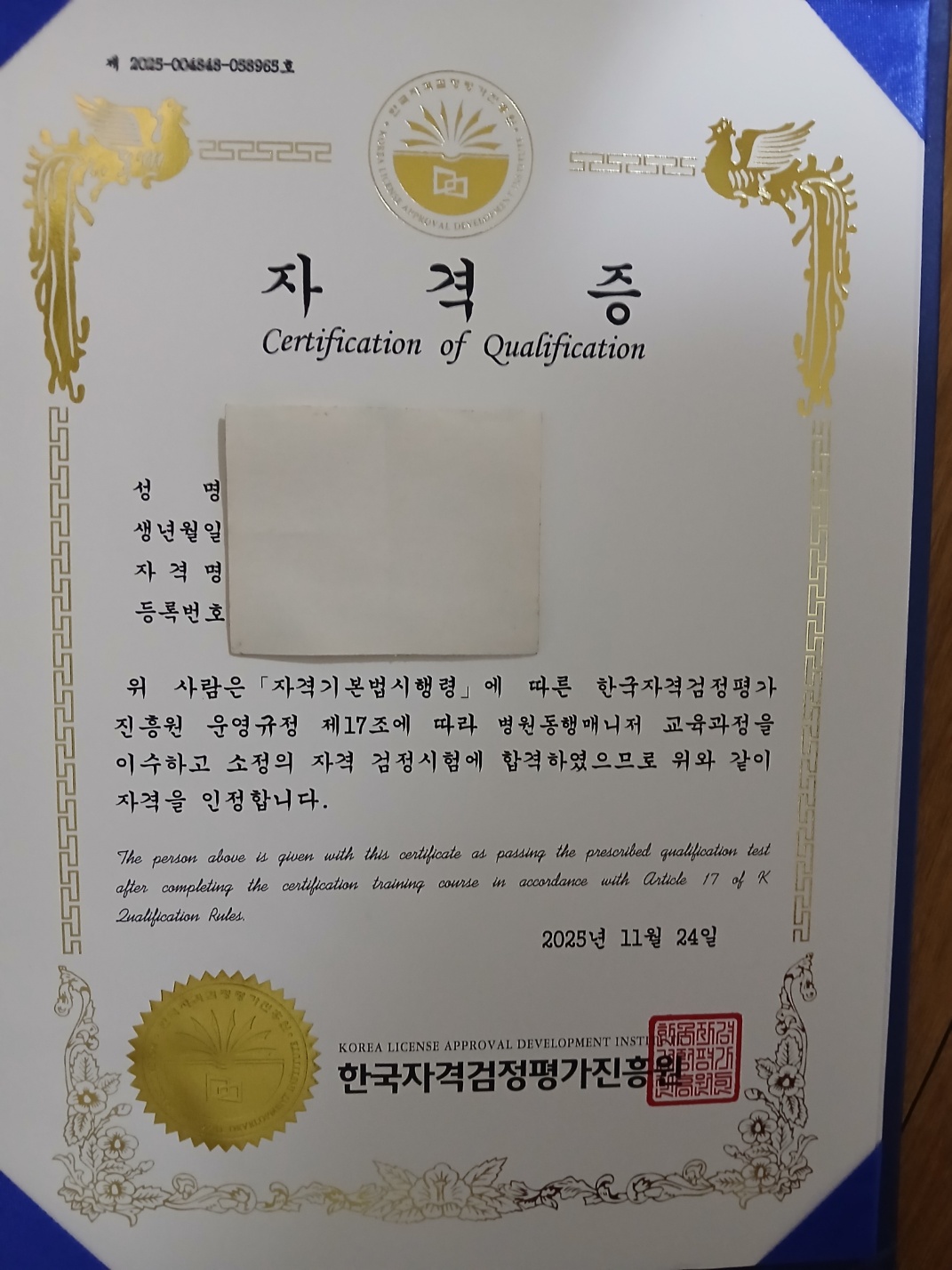 얼마전 생활지원사 취업하는데 병원동행매니저 자격증 기입했어요. 취업 합격했는데 큰 도움이 되었다고 봅니다. 미리 미리 취득해 놓길 잘했어요