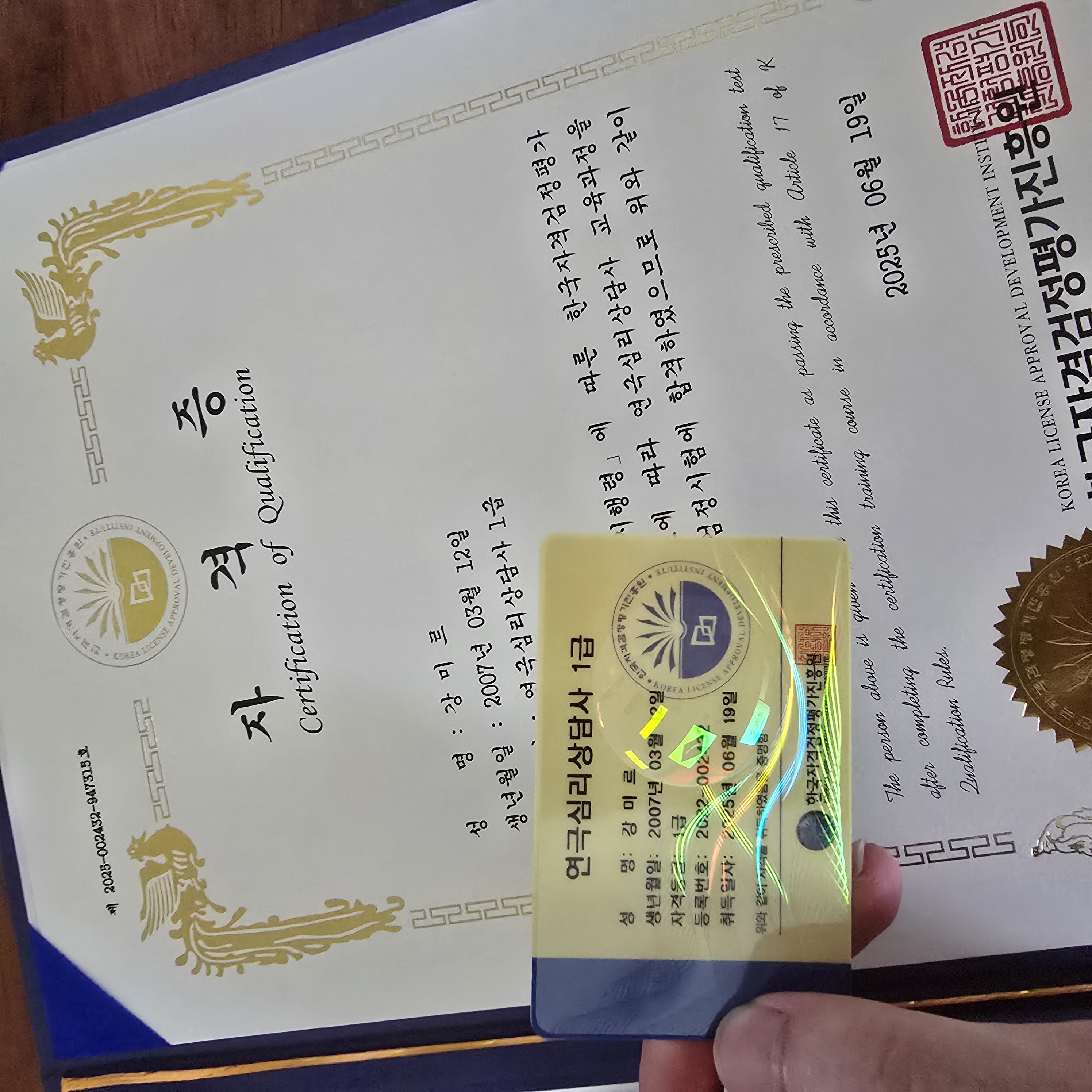 평소 관심이 있었던 심리 분야의 자격증을 직장을 다니면서 취득할 수 있다니 정말 좋아요!! 강의를 꾸준히 공부하면서 무난하게 합격할 수 있었어요~ 다른 과정도 도전해보고 싶어요 ㅎㅎ