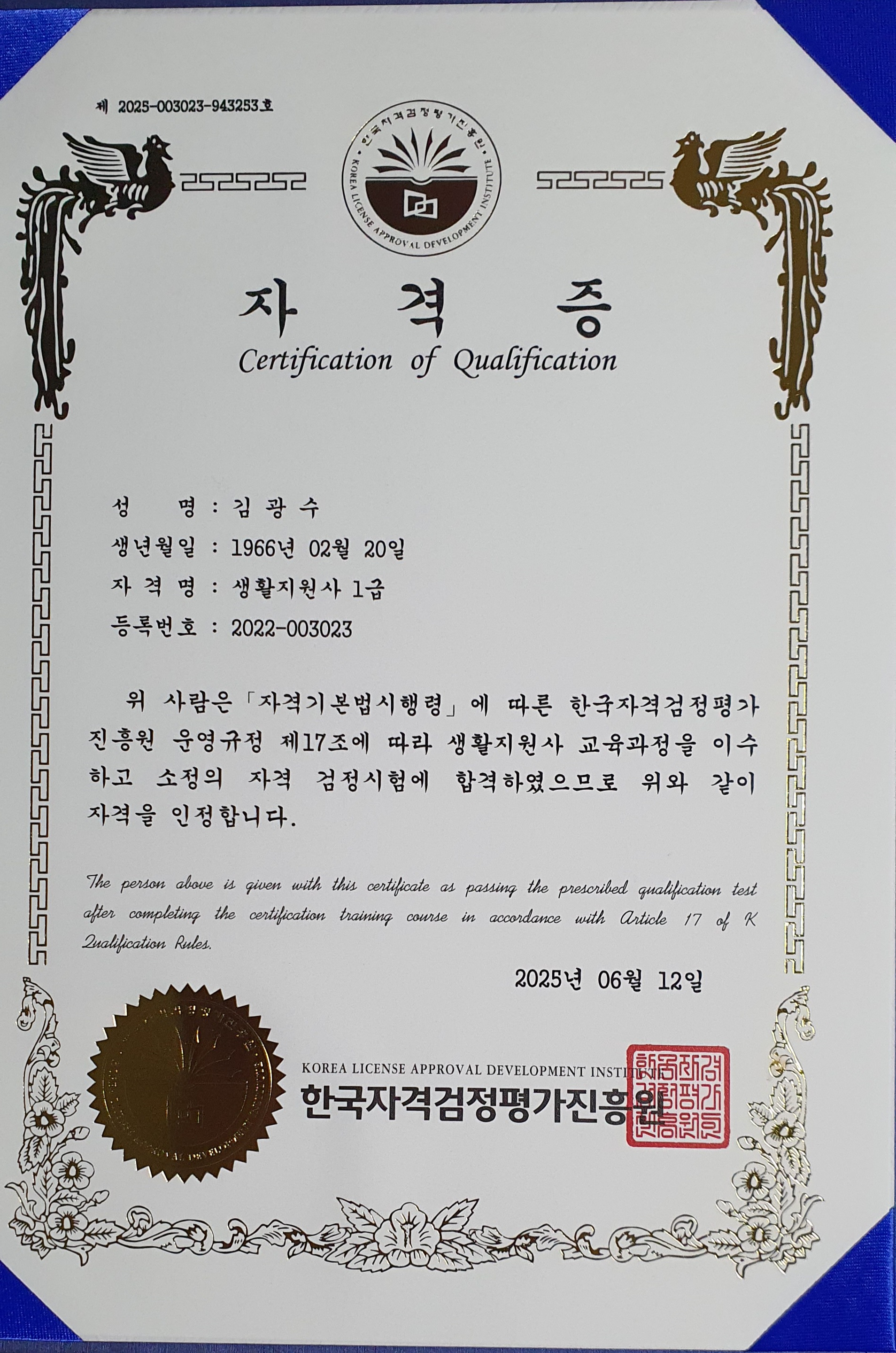 현재 장애인활동지원을하고 있고 사회복지사2급 실습 받을때에 생활지원사분들이 활동하고 계시다는것을 알게 되어서 자격증을 취득신청하게 되었습니다 사회복지사 강의 내용과 유사한 내용이 많아서 접근이 쉬웠습니다 활용을 잘 할 수 있도록 하겠습니다 감사합니다