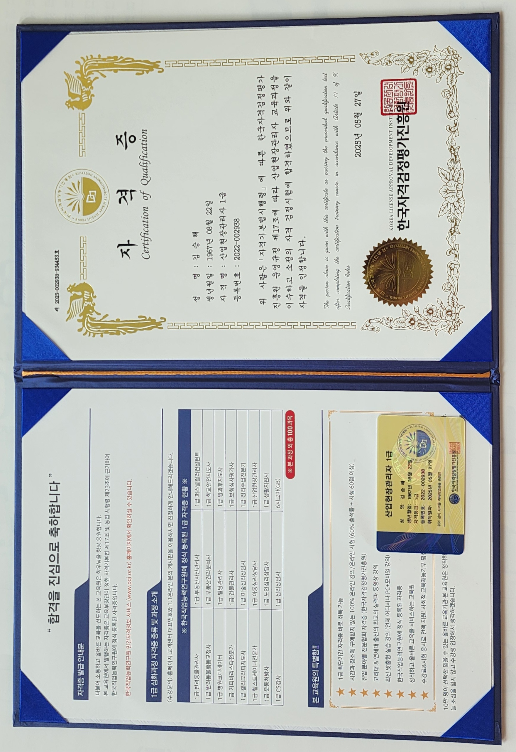 부모님 간병하면서 교육이 필요했는데 자격취득까지 가능해서 너무나 행복하네요^^ 제 자격증이 도움이 필요한 많은 이들에게 도움이 되기를 바랍니다