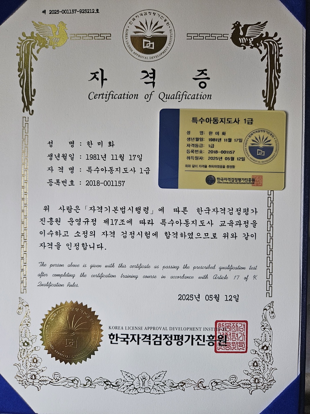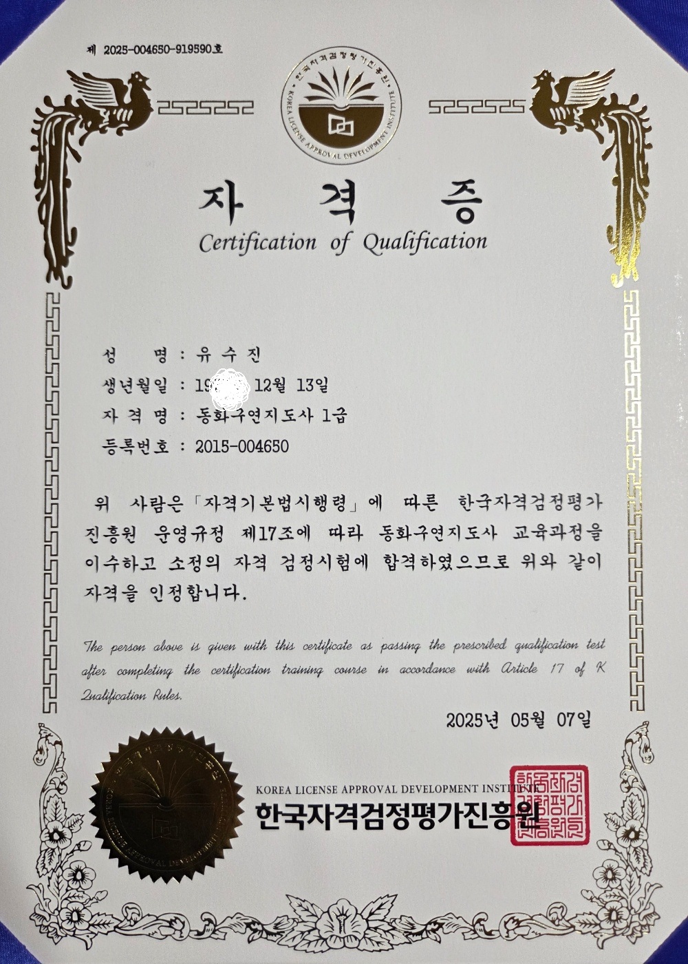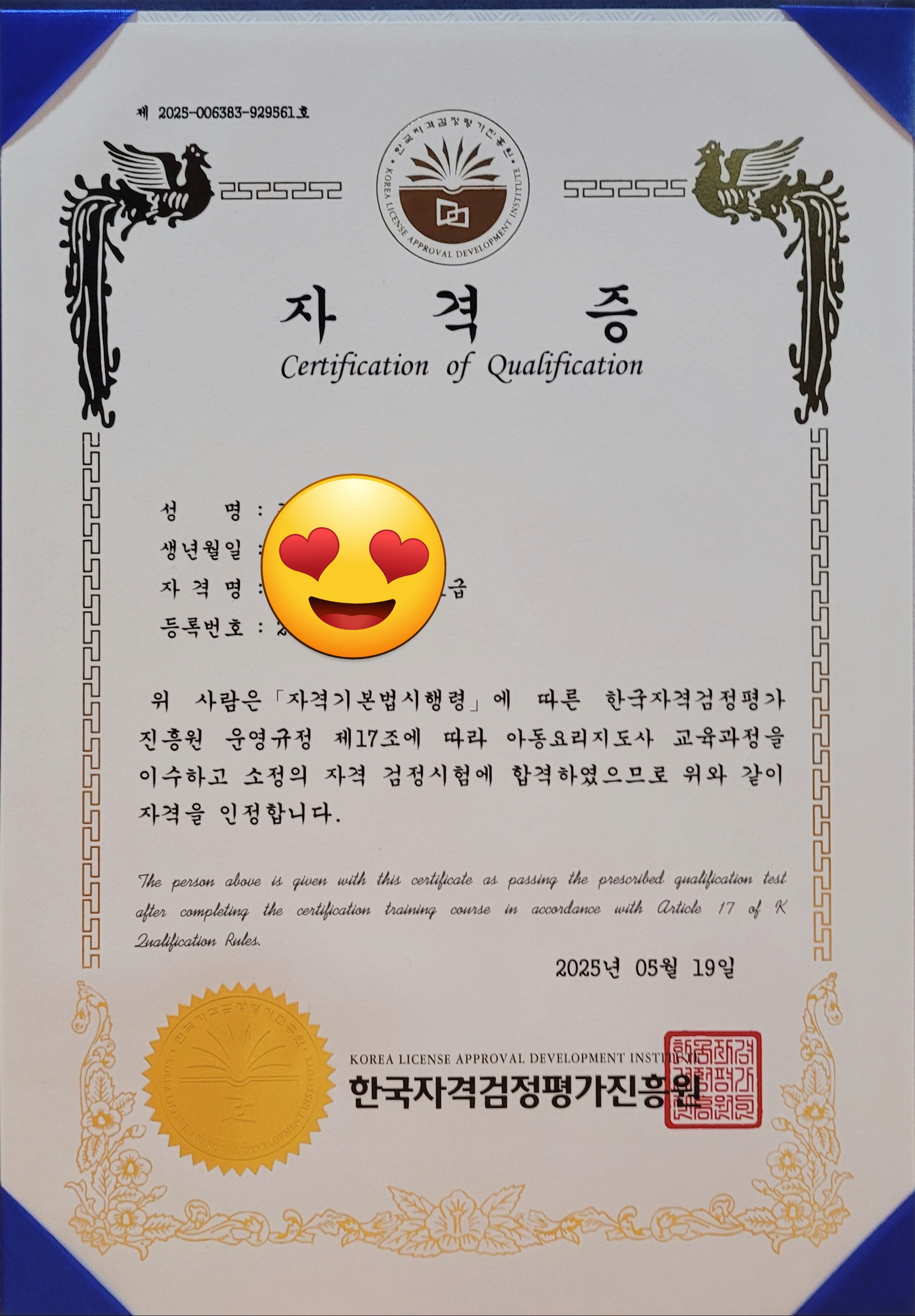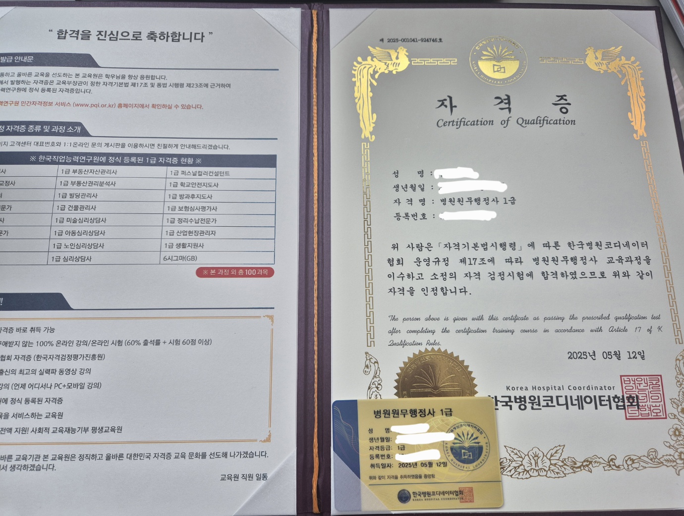 전부터 취득하고 싶었던 자격증이었는데 드디어 합격했네요ㅎㅎ 민간자격증이어도 여러곳 알아보고 비교해서 선택했던 곳이네요 자격증도 두가지 스타일로 발급해주셔서 더 값진 보람이 느껴졌습니다~ 이제 더 많이 활용할 일만 남았네요 다른분들도 고민하지마시고 여기서 취득하세요^^