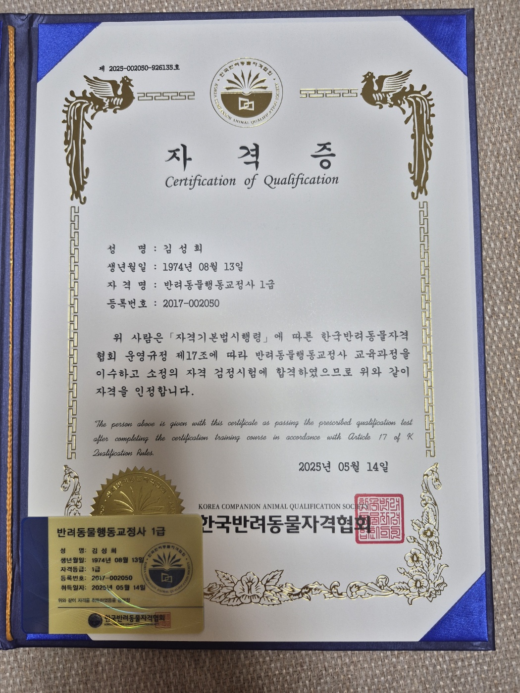 우리 강아지를 위해 어떤 것이 좋고 나쁜지 알기위해 시작했는데 자격증을 따고 받아보니 너무 뿌듯합니당~~
