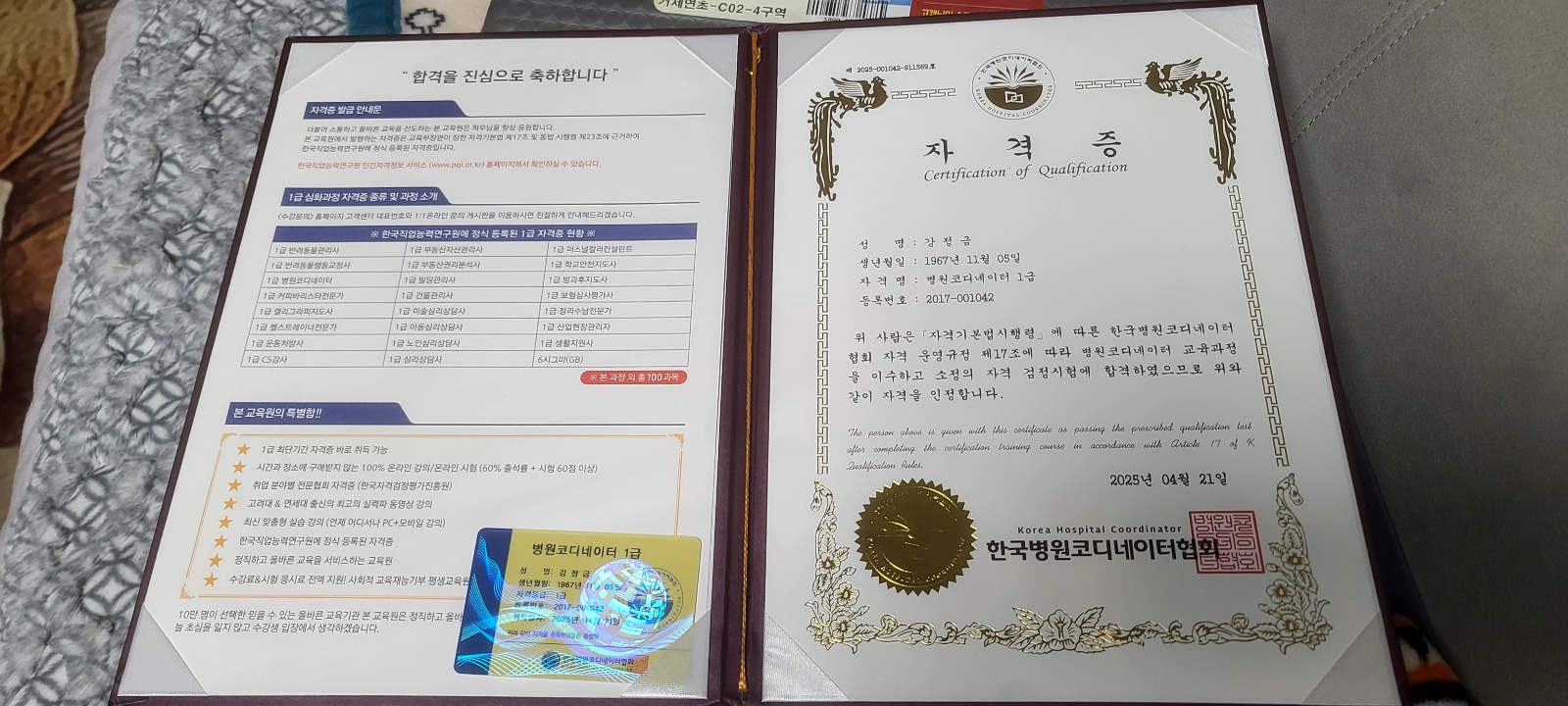 중장년으로 접어들어 새로운곳에의 도전이 필요하고 새직업의 필요성이 절실하여 본교육원에서 좋은 기회를 주어 자겨증을 취득하게 되어 넘 감사하게 생각합니다. 좋은 기회를 찾아 더 도전토록 하겠습니다.