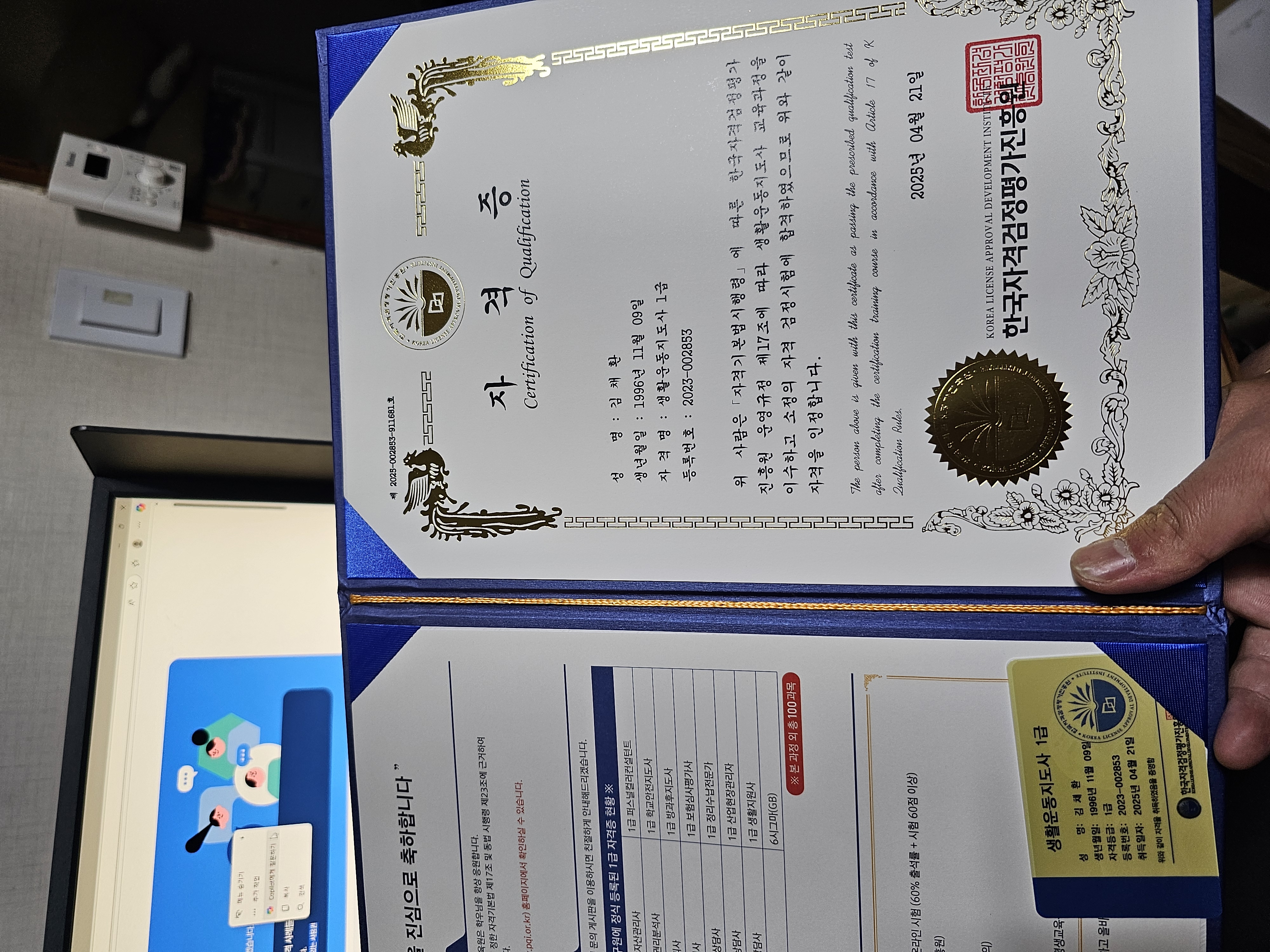 자격증공부하고싶었는데 우연히 찿게된 교육복지센터 열심히 공부후 자격증을 취득하게되었고 집으로 자격증 도착해서 자랑도하고 너무나도 기분이좋아요 배움의터 길을 찿는분께 강력추천합니다