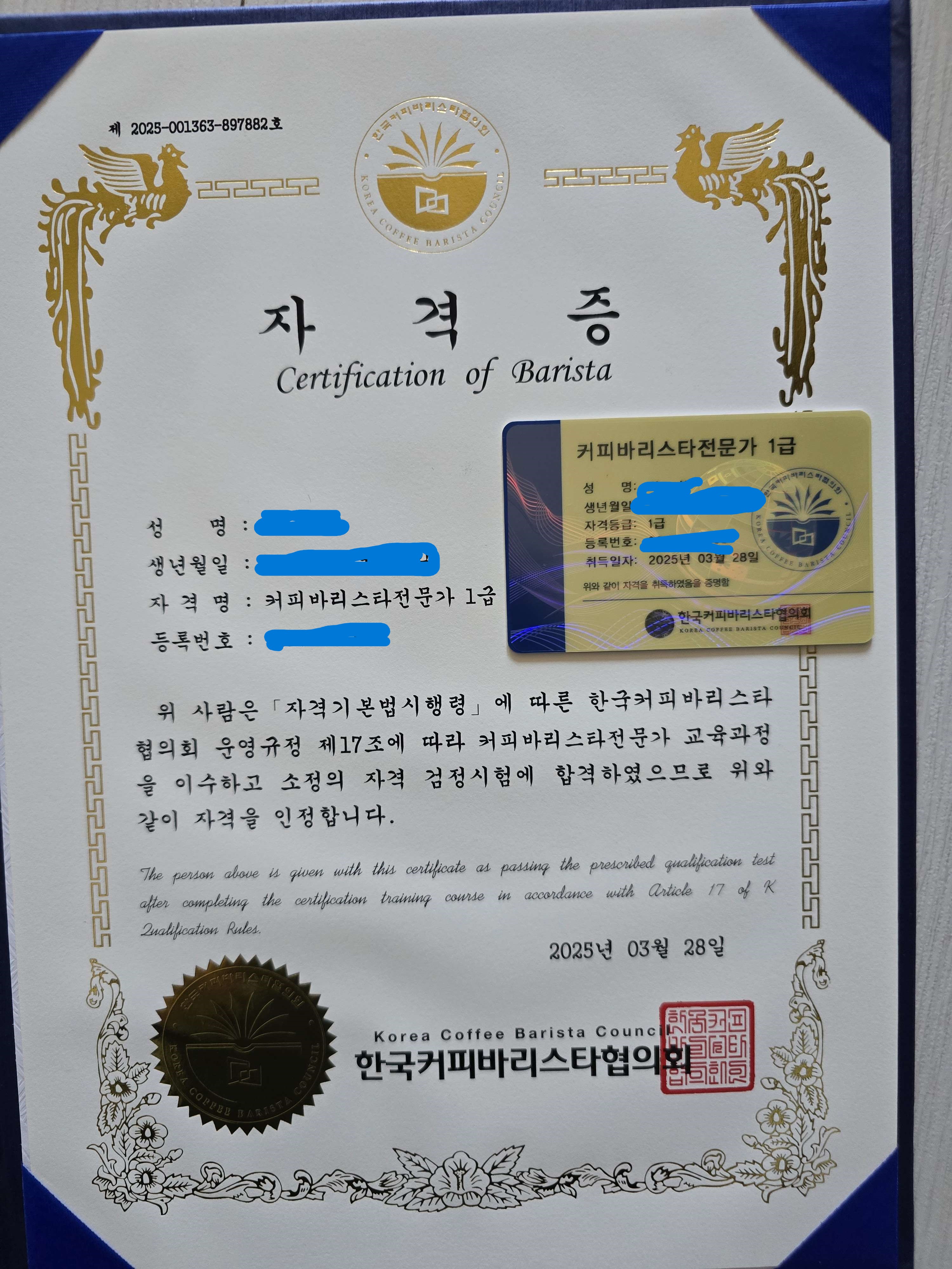 커피바리스타전문가 1급