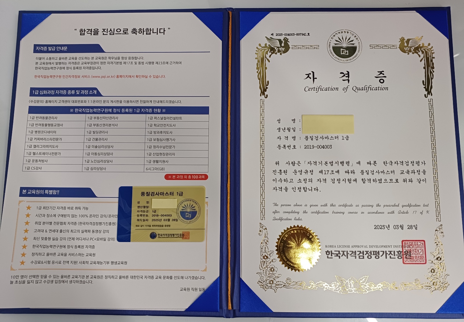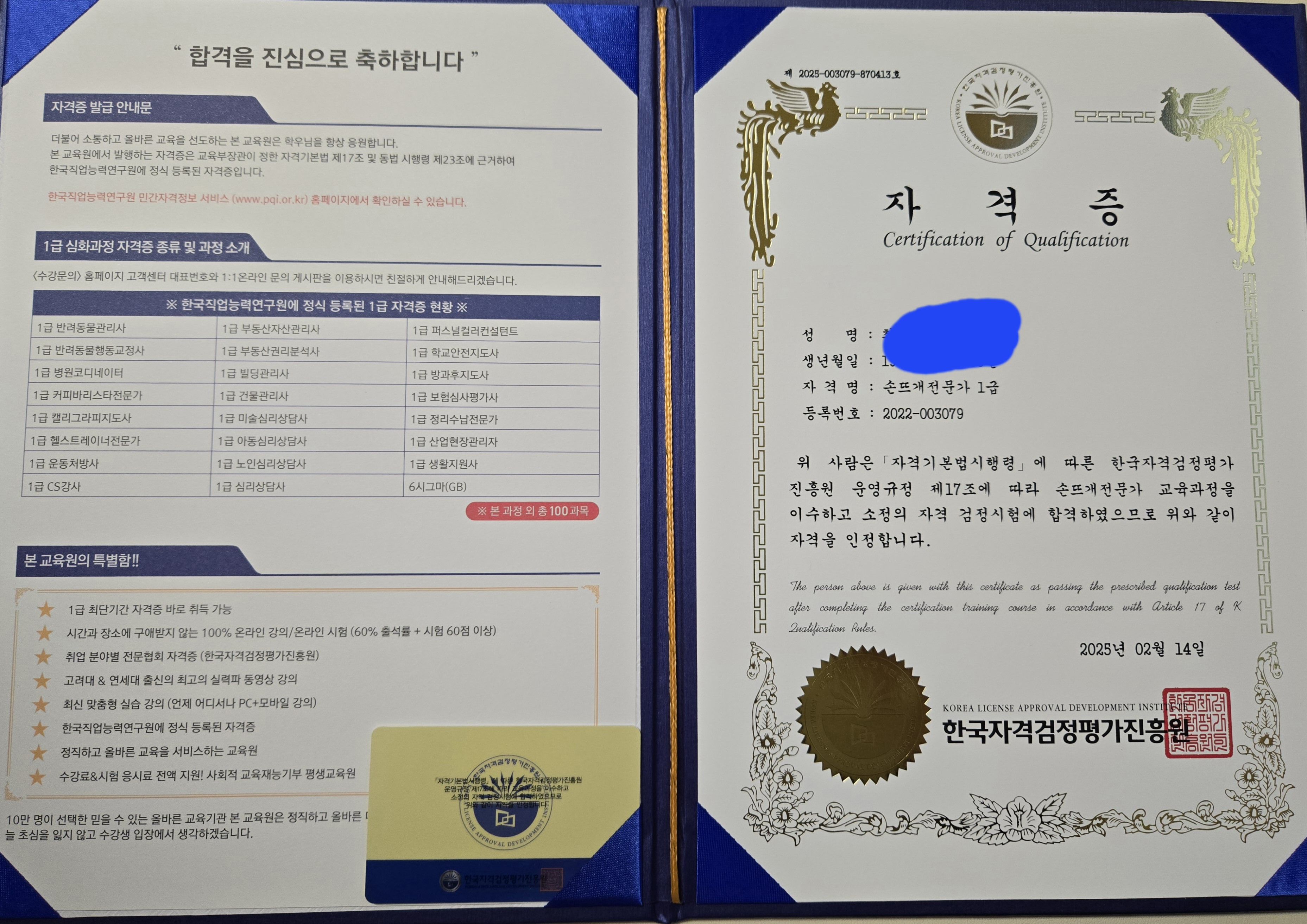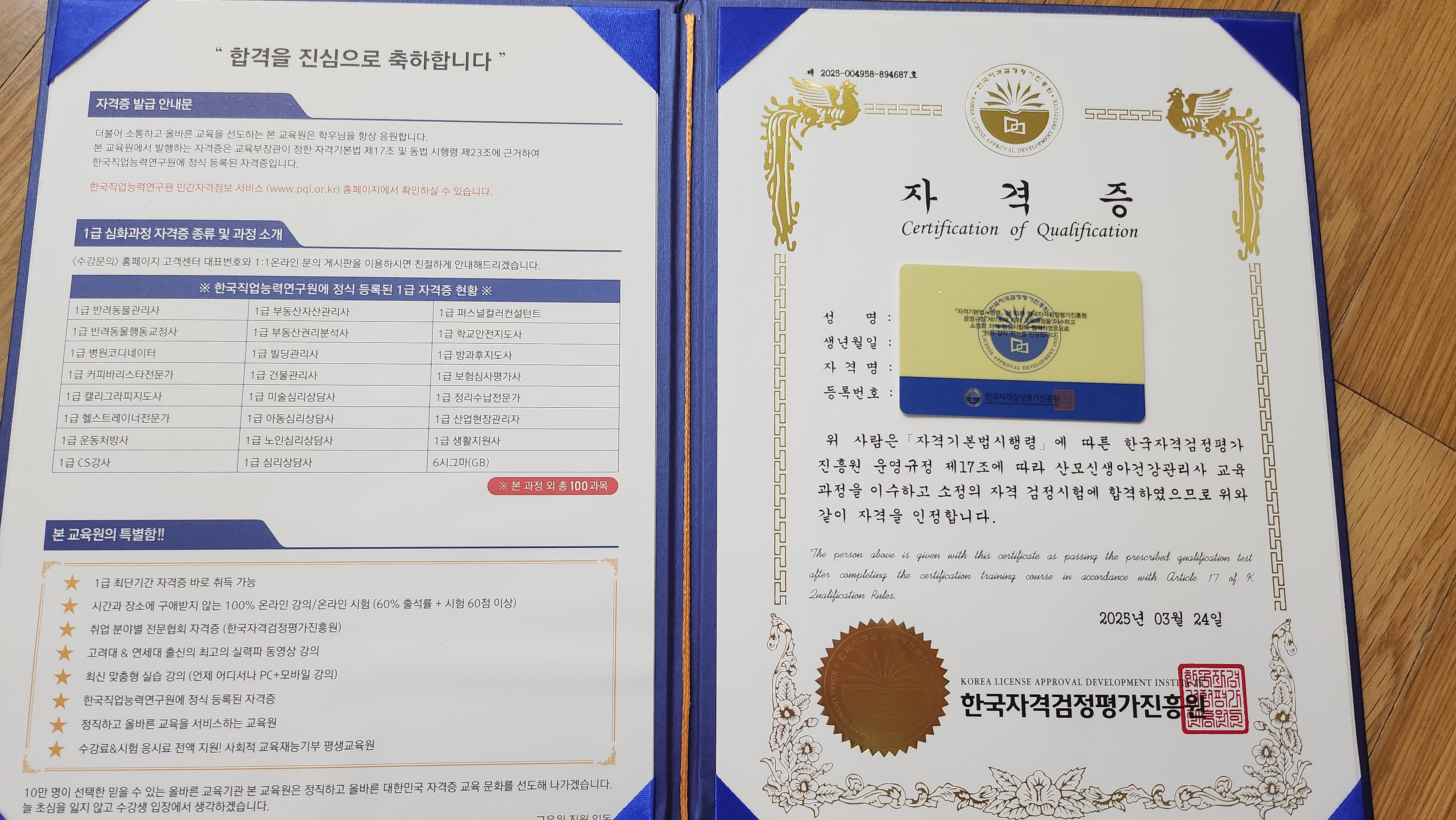우연히 접하게된 자격증 빠르고 간편하게 자격증 취득까지! 시간이 부족하신 분들도 쉽게 자격취득 가능해서 좋네요