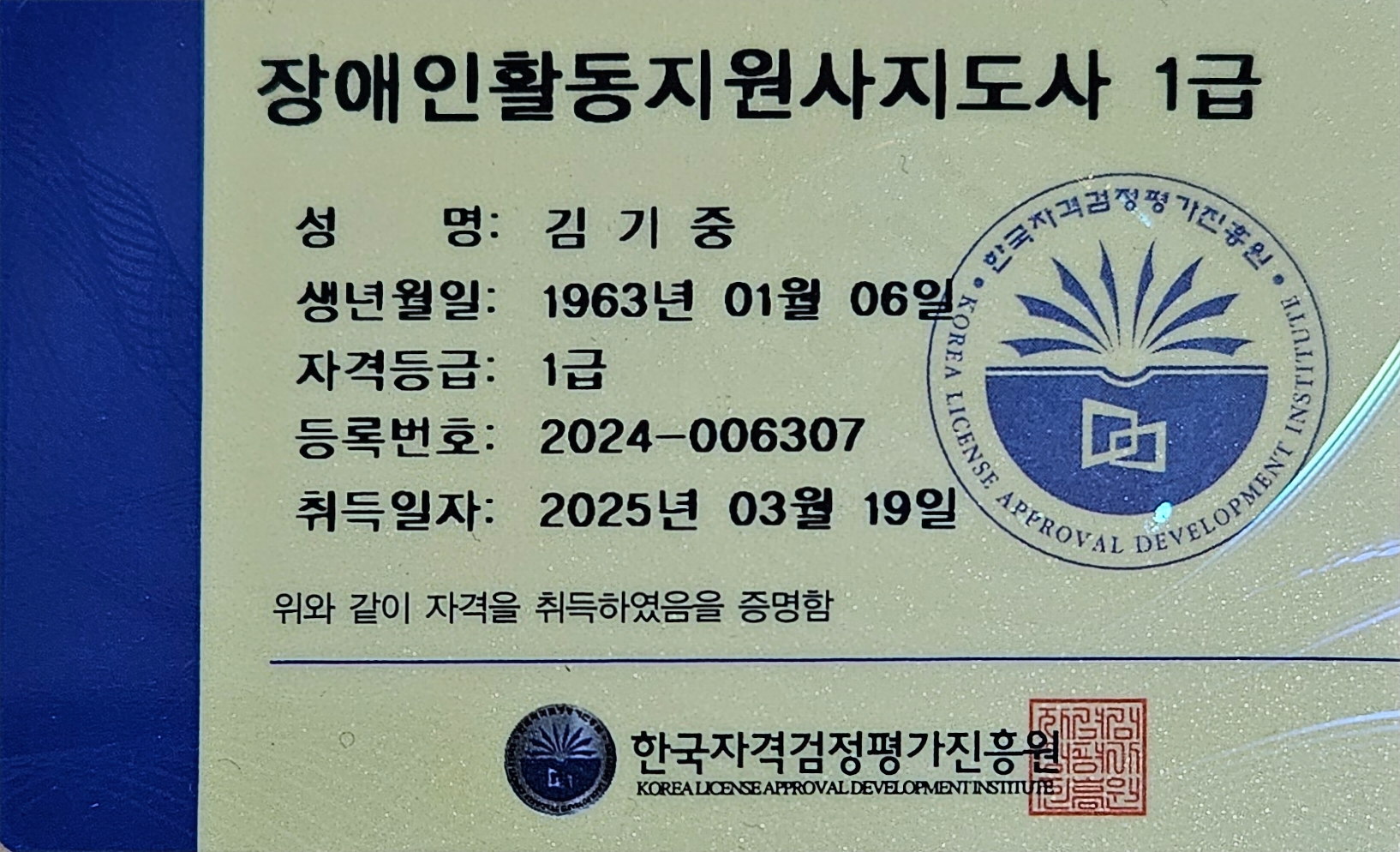 자격증이 손 안에 있으니 자신감이 생깁니다.