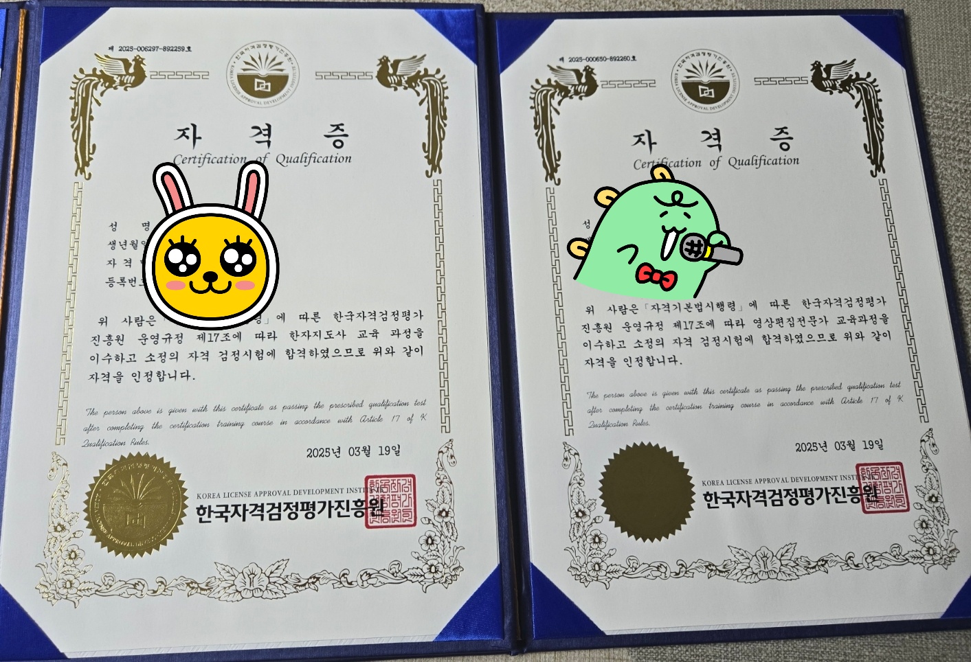 좋은 자격증을 잘 취득했습니다.