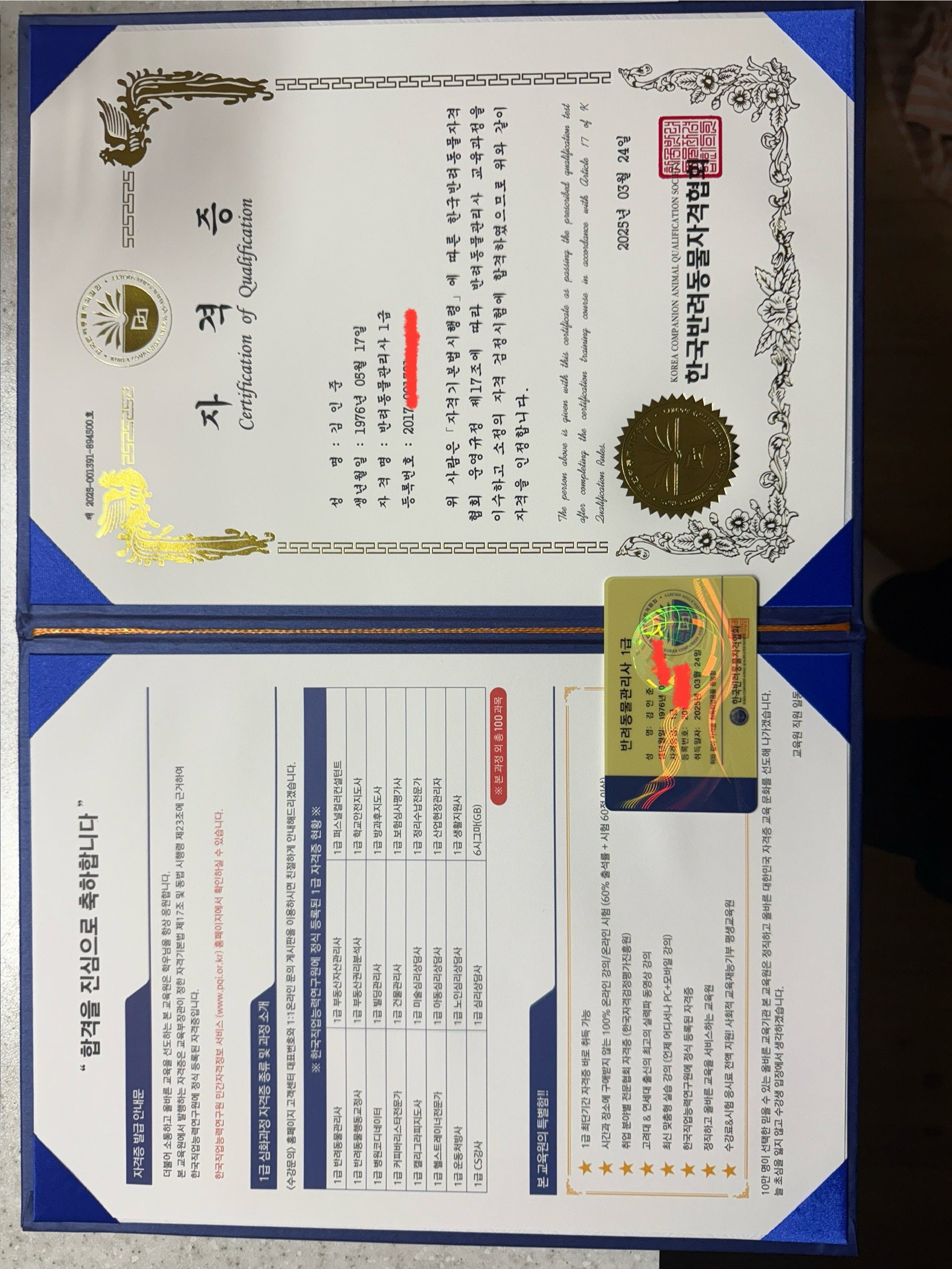 우연히 인터넷을 보다 접하게되어 꼭 하고 싶었던 반려동물관리사 자격증을 무료로 수강하고 취득할수 있게되어 열심히 공부하고 취득하게 되었습니다 감사합니다