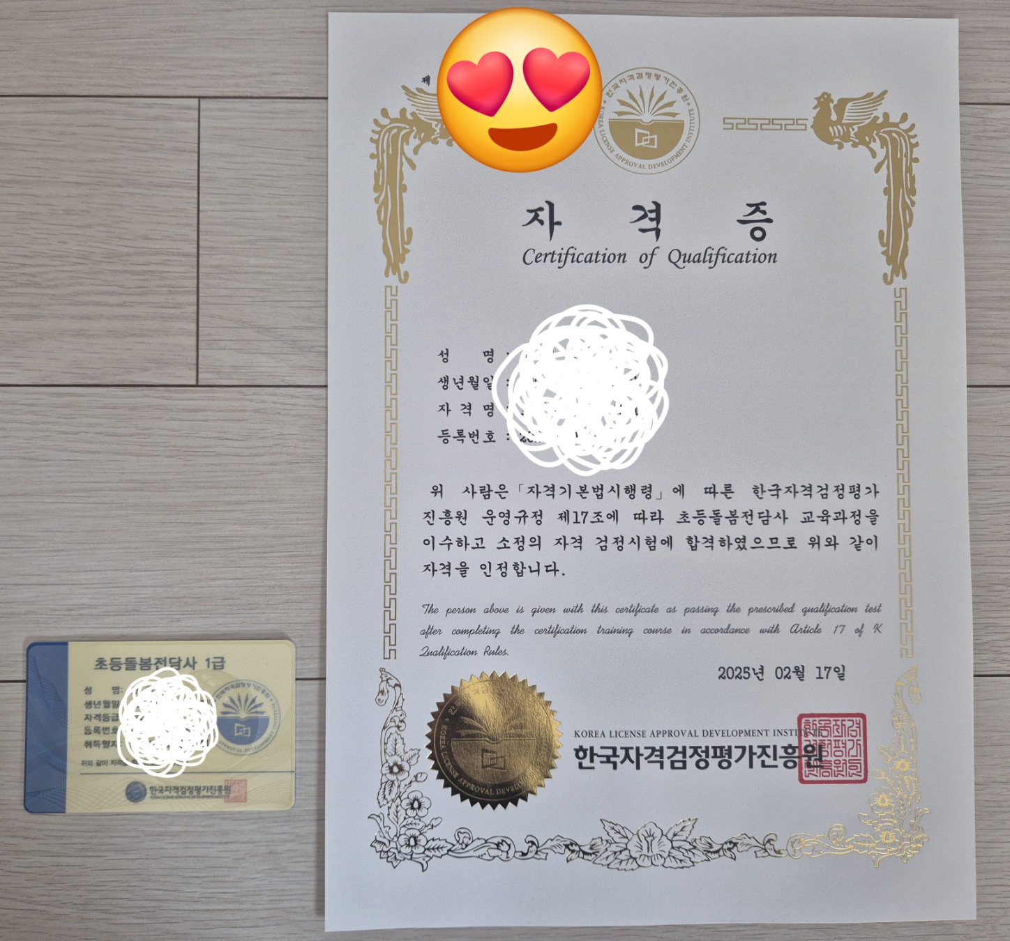 초등돌봄전담사 1급 합격!!~
