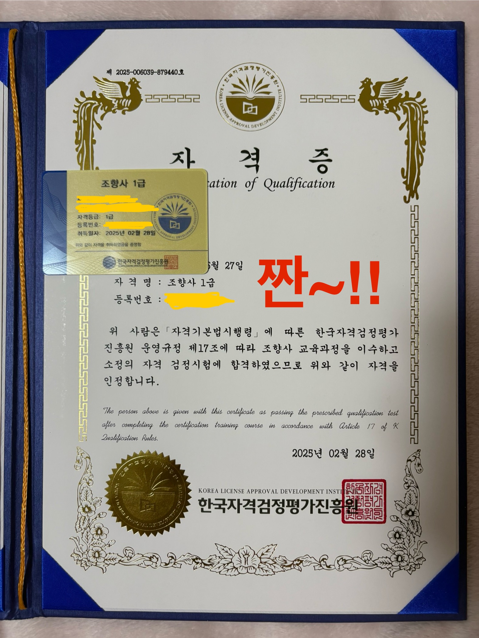 두번째 자격증 취득입니다~^^