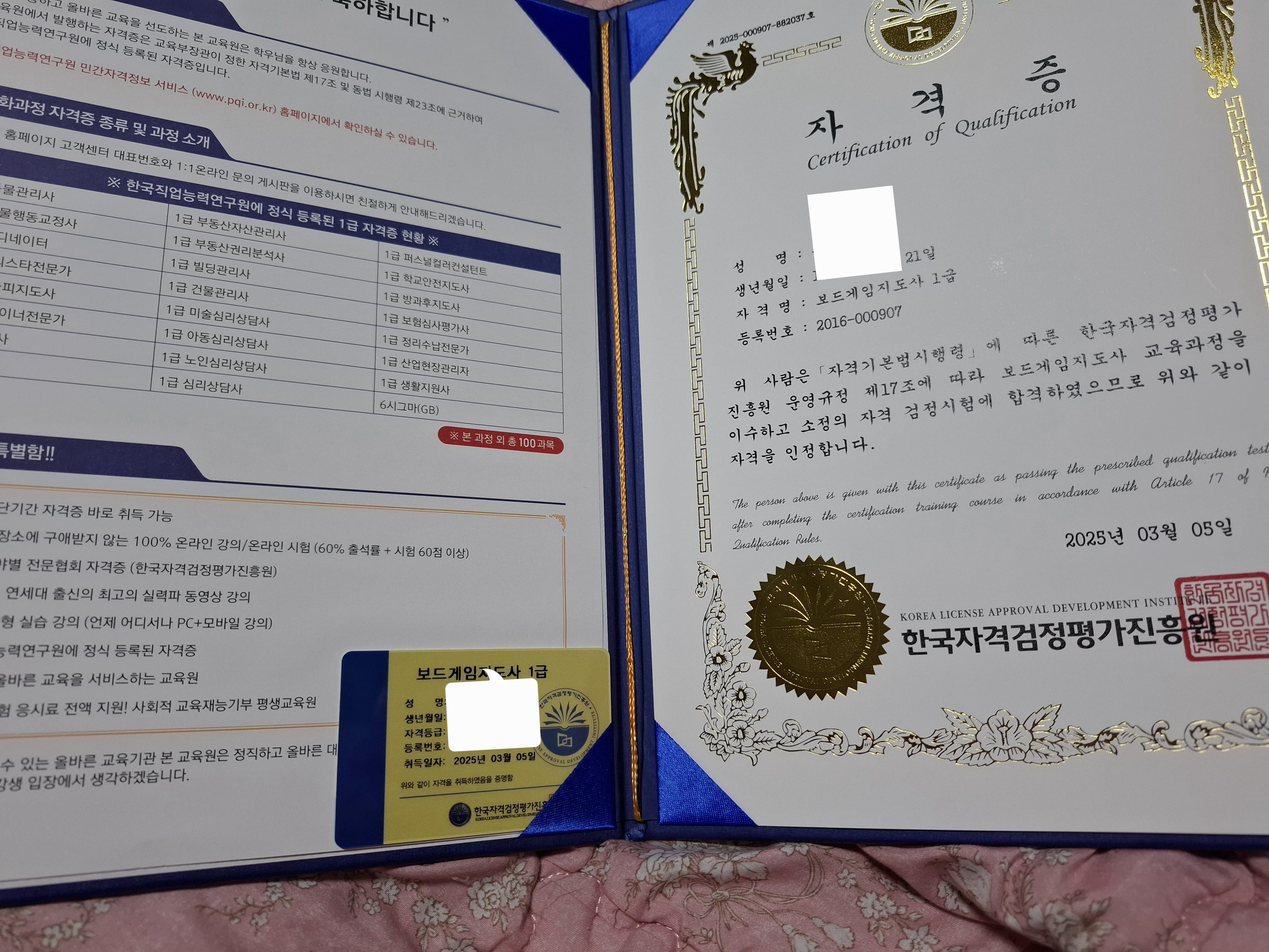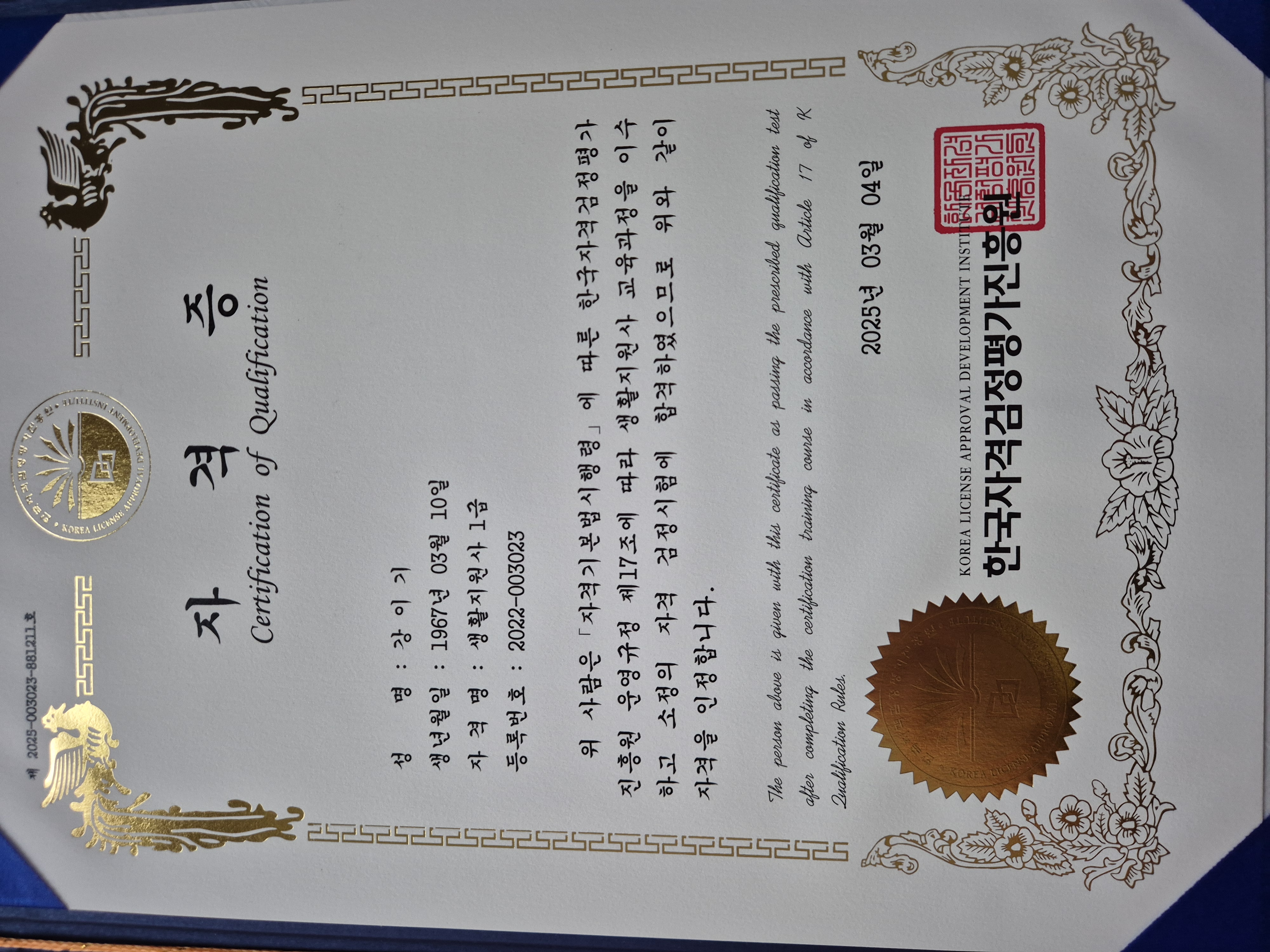 은퇴후 무엇을 할지 고민중에 우연히 도로에 걸린 생활지원사 구인 현수막을 보고 호기심에 찾아보다가 여기서 수월하게 취득했습니다.운전면허밖에 없던 내가 자격증을 땄네요. 수업이 어려운것도 아니고 수강료도 없으니 누구든 도전해 보세요. 혹시 쓰일데가 있을수 있으니까요.