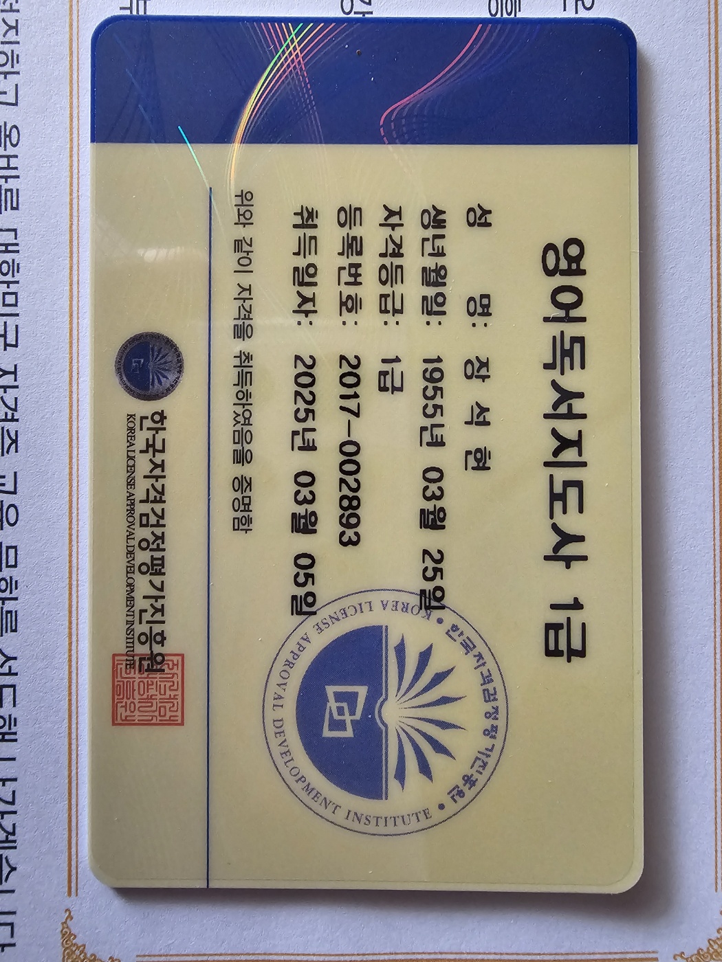 제 2의 직업을 준비 해야 되겠다는 생각에 실버 자격증을 따게 되었습니다. 자격증에 손에 들어오고 나서야 실감이 나네요 . 든든한 마음도 들고 다른 자격증도 취득하고픈 마음이 듭니다 ^^!