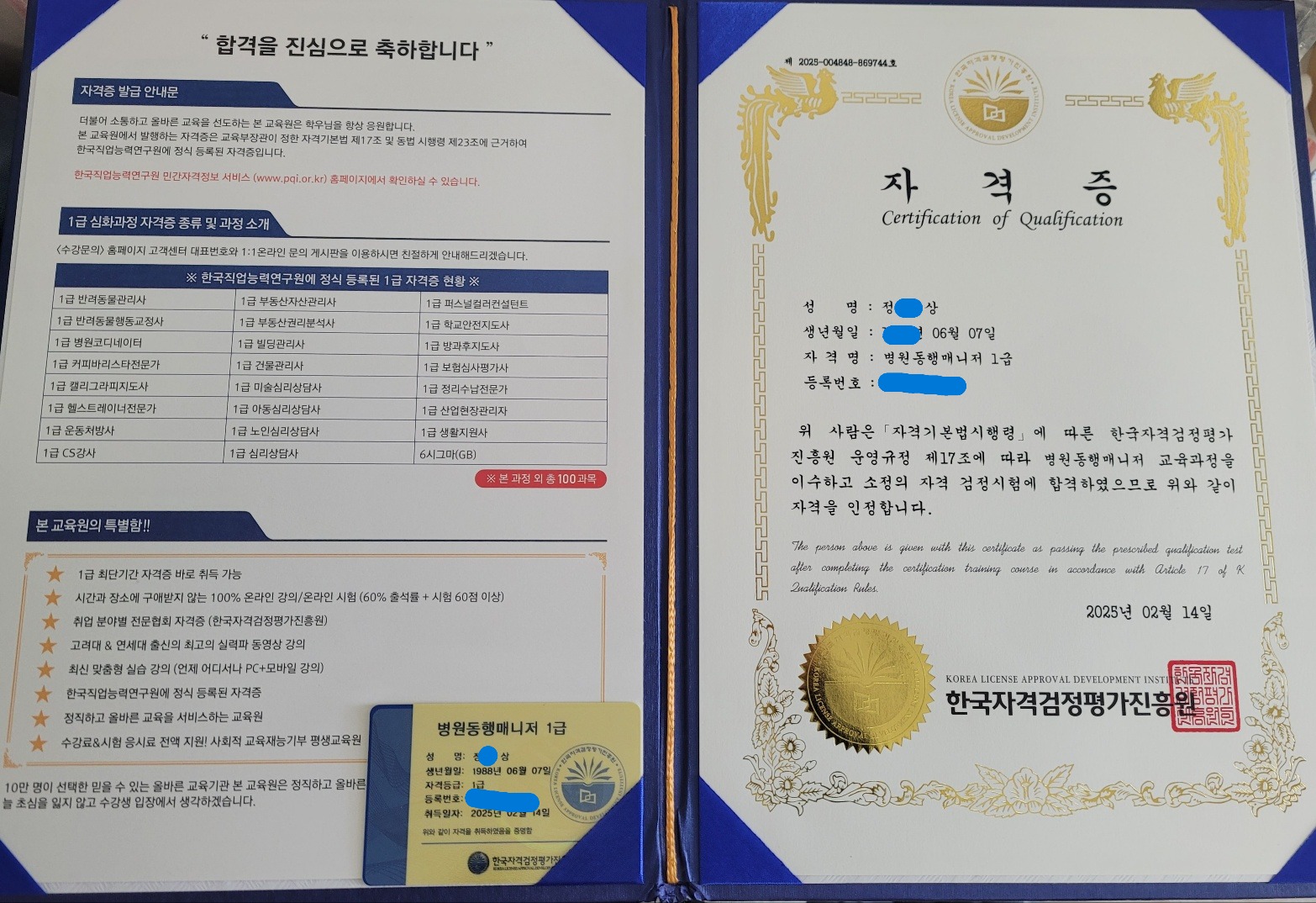 병원동행 자격증 손에 넣었습니다!!! 좋네요