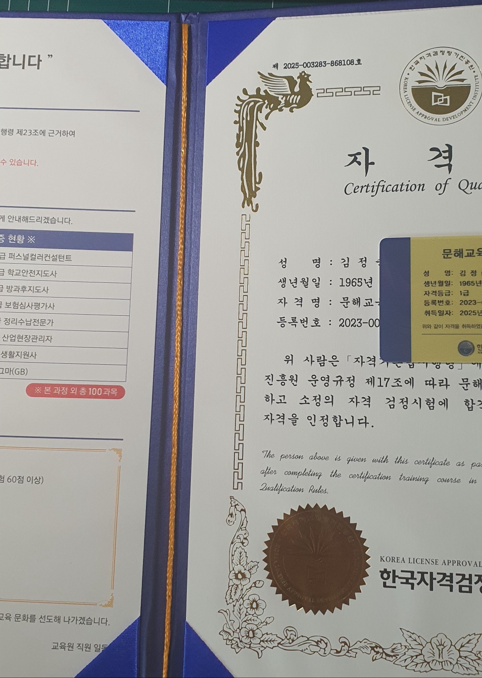 한국자격검정평가진흥원에서 온라인 강의 듣고 시험 치고 합격해서 자격증 따서 너무 좋아요. 제가 따고 싶은 과목도 있고 다른 과목도 시도해 볼 거예요. 감사합니다.