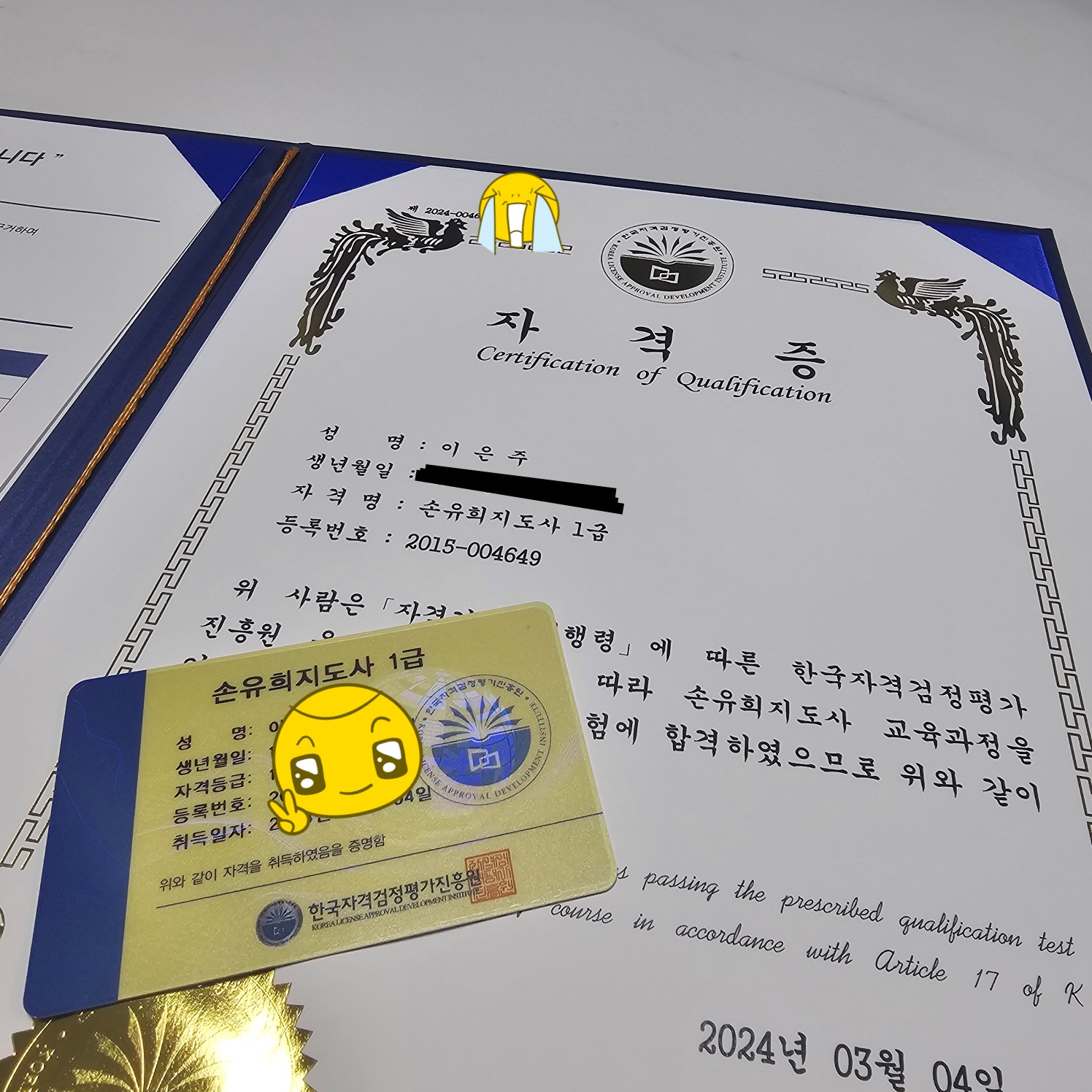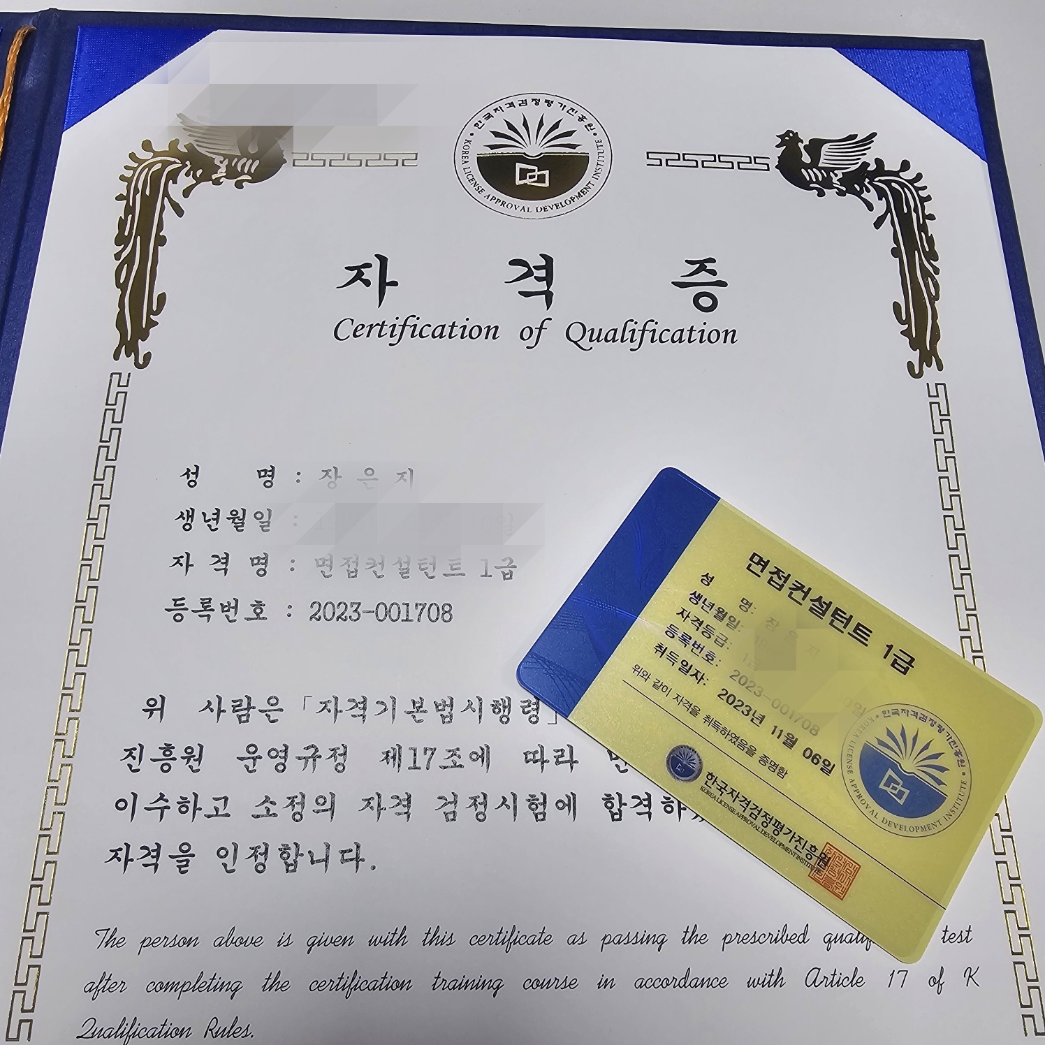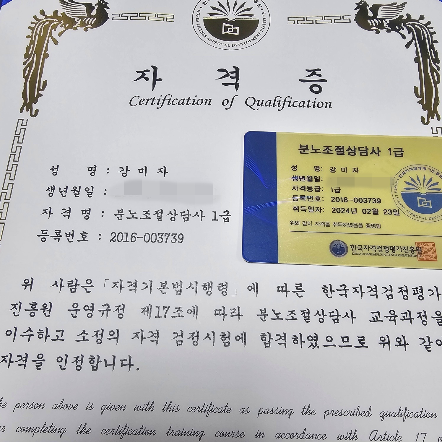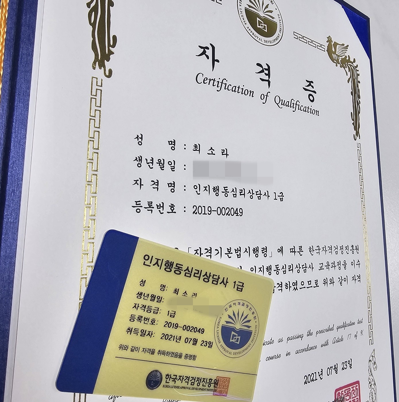 안녕하세요! 저는 지금 복지관에서 노인분들에게 도움을 주는 일을 하고 있어요. 최근에 한국자격검정평가진흥원에서 인지행동심리상담사 자격증도 취득했답니다! 복지관에 노인분들이 많다 보니 도움 많이 됐어요. 이론도 배우고, 실제 상담에 필요한 기술도 익힐 수 있어서 너무 좋았어요. 강사님들이 정말 열정적이셔서 수업이 지루할 틈이 없었고, 다양한 사례를 통해 실제 상황에 대한 이해도 쑥쑥 올라갔어요. 자격증을 딴 후에는 더 나은 상담과 지원을 할 수 있을 것 같아 자신감이 생겼어요.