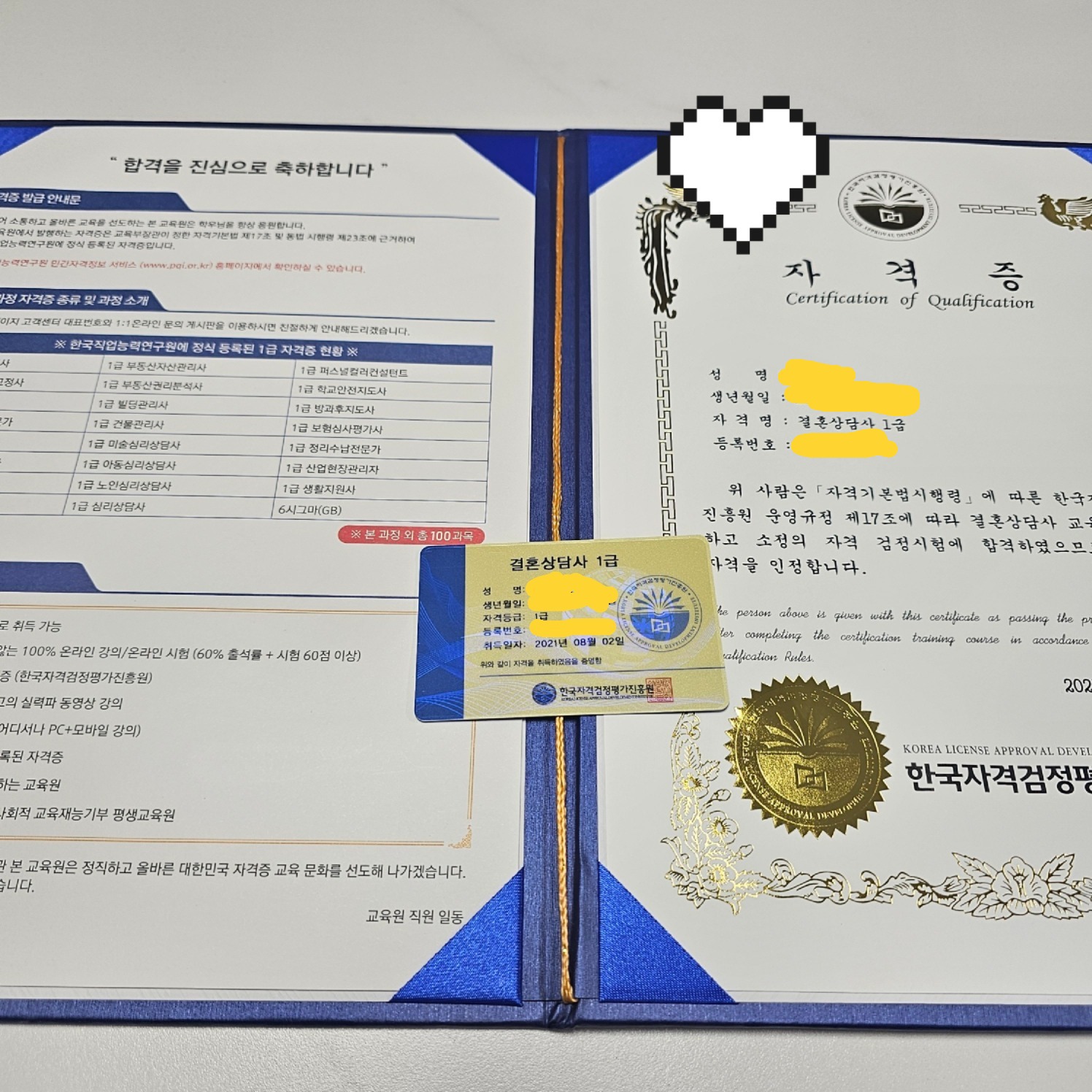 한국자격검정평가진흥원에서 결혼상담사 자격증을 취득한 후, 웨딩 플래너로 취업하게 된 경험은 제 인생의 전환점이었습니다. 결혼 상담에 필요한 전문 지식과 실제 상담 기술을 체계적으로 배울 수 있었습니다. 특히, 다양한 사례와 롤플레잉을 통해 실제 고객과의 상담 상황을 미리 경험해볼 수 있었던 점이 큰 도움이 되었습니다. 자격증을 취득한 후, 웨딩 플래너로서의 첫 직장에 들어가게 되었고, 고객의 소중한 순간을 함께 준비하는 일에 큰 보람을 느끼고 있어요!