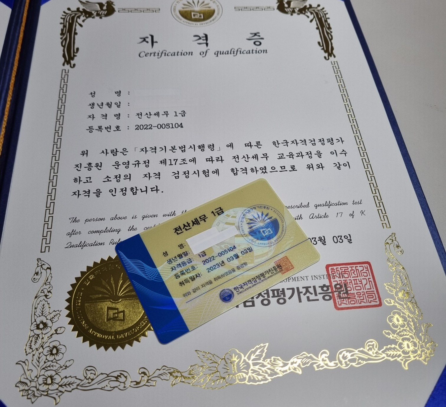 맨날 회계용어만 보면 무서워서 벌벌 떨었는데, 자격증 시험으로 전문인이 된 느낌입니다. 자신감도 생기고 너무 행복해요~~~