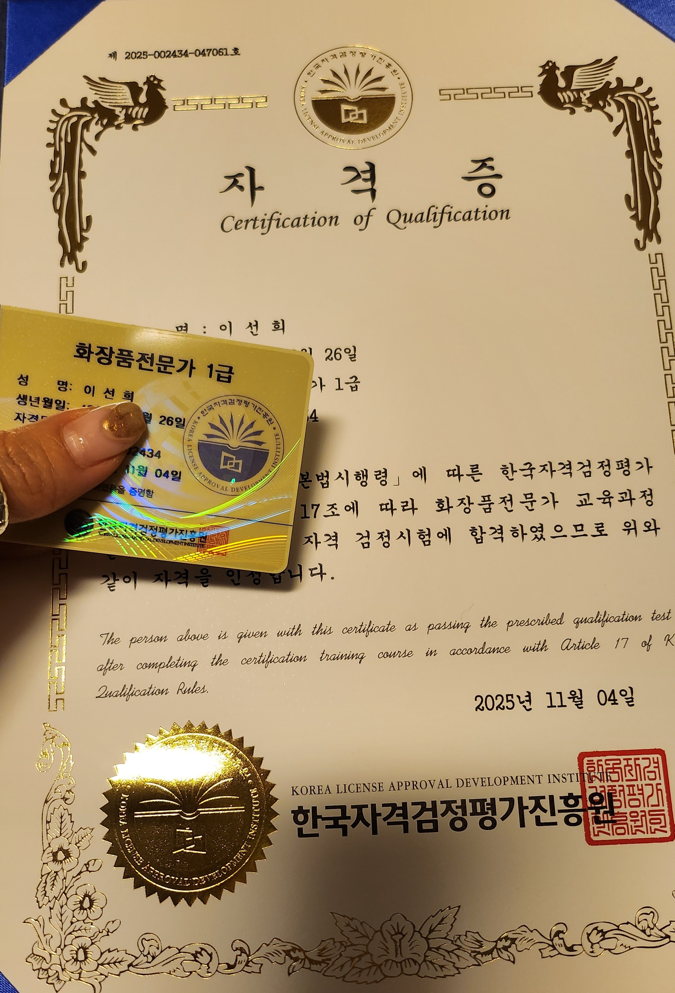 병원동행 매니저 1급 자격증 취득 너무 감사합니다.