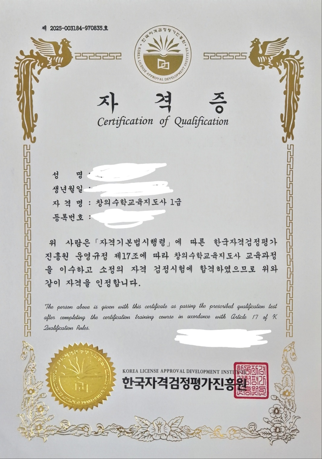 창의수학교육지도사1급 감사합니다.
